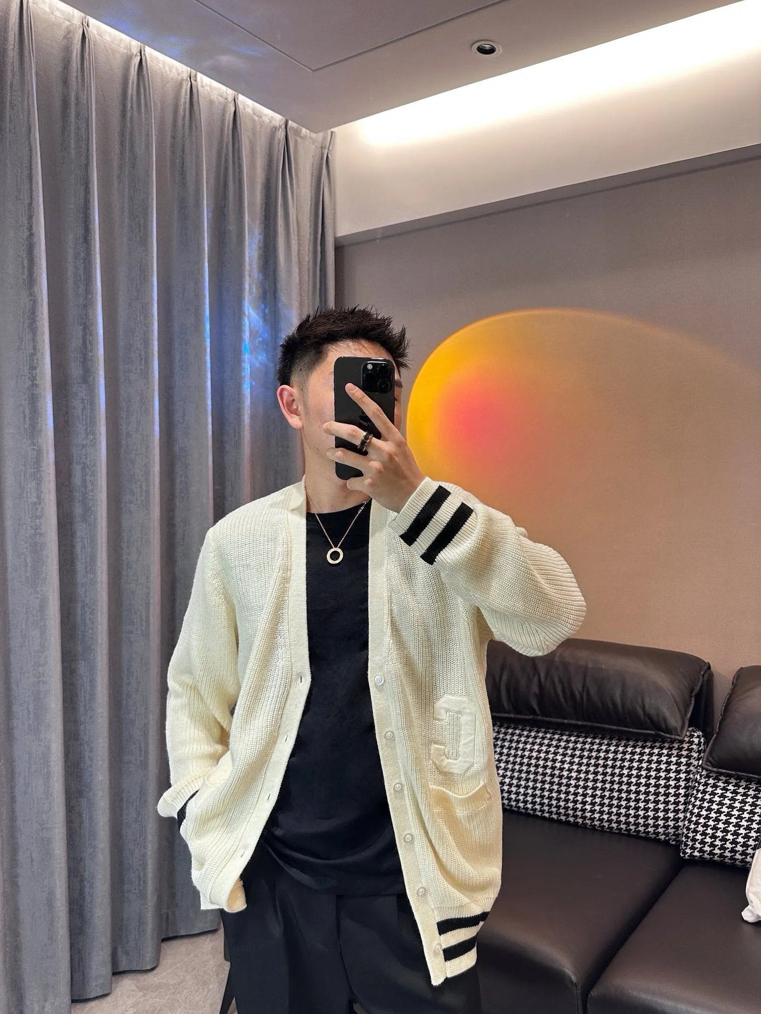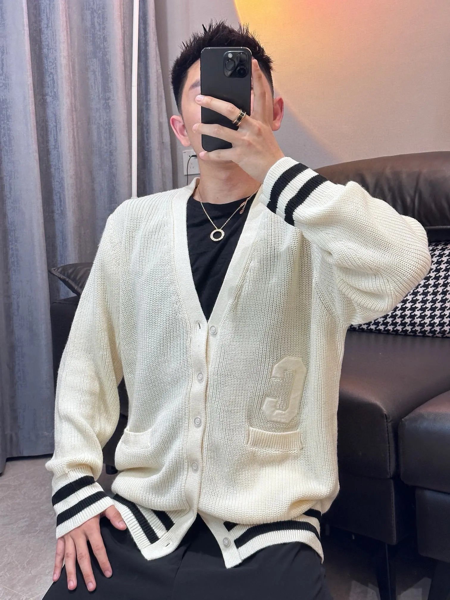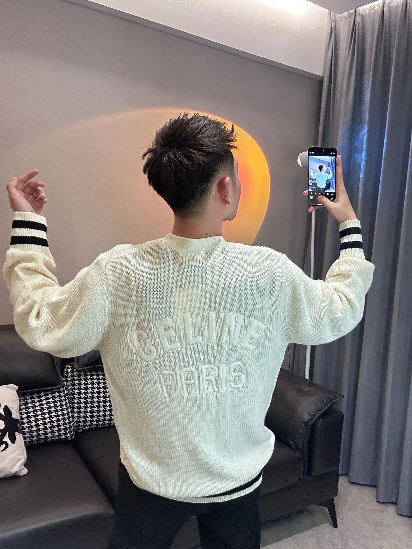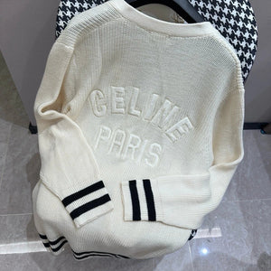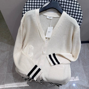 Celine Sweater V Collar Cardigan Sweater Coat Men and Women Same Style Top Long Sleeve Soft Glutinous Idle Style OS Loose Fit Thickened Versatile Casual Wear for Both Inner and Outer Layering