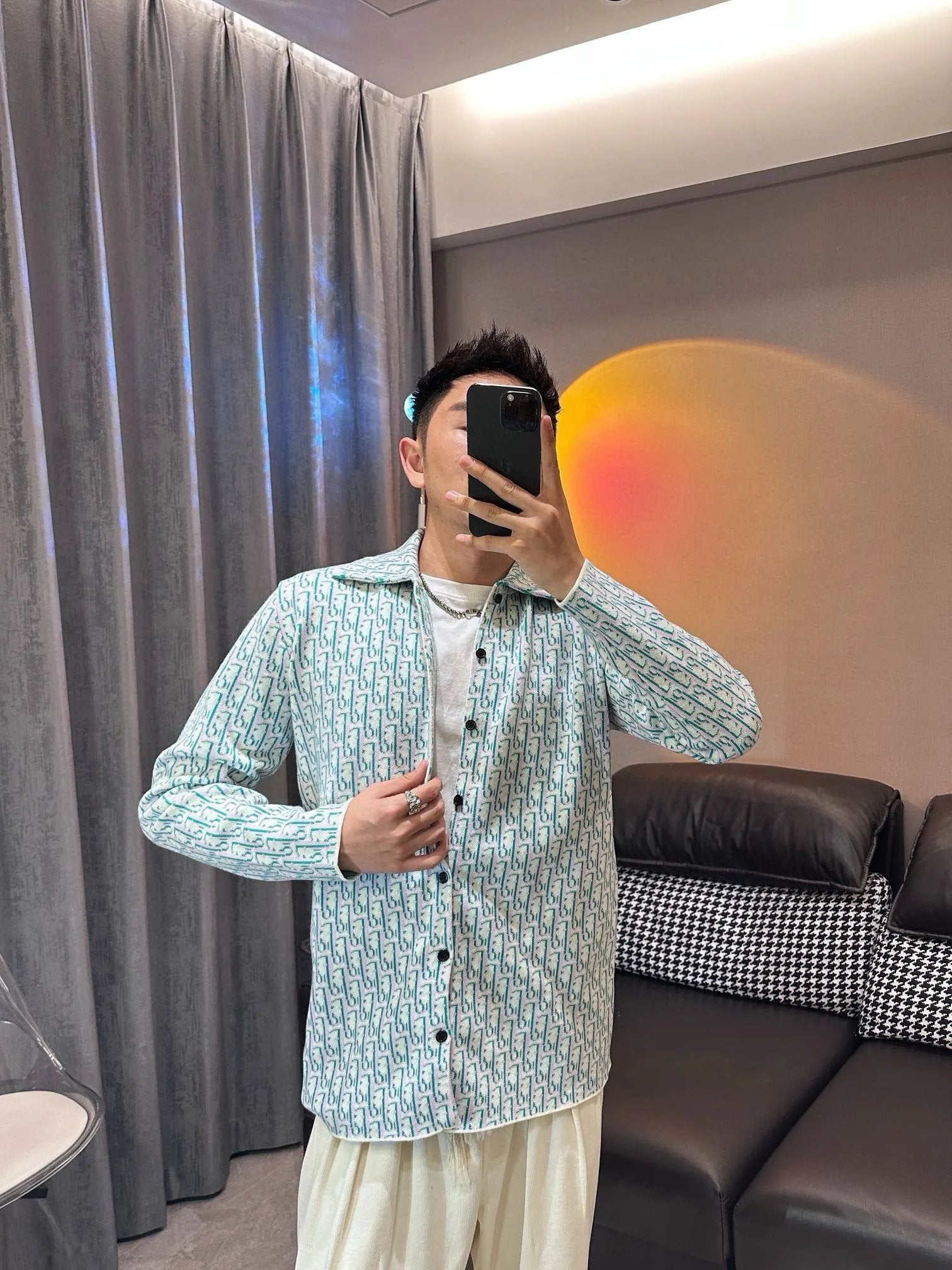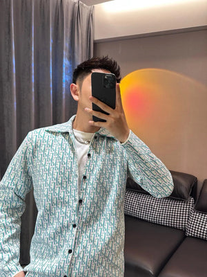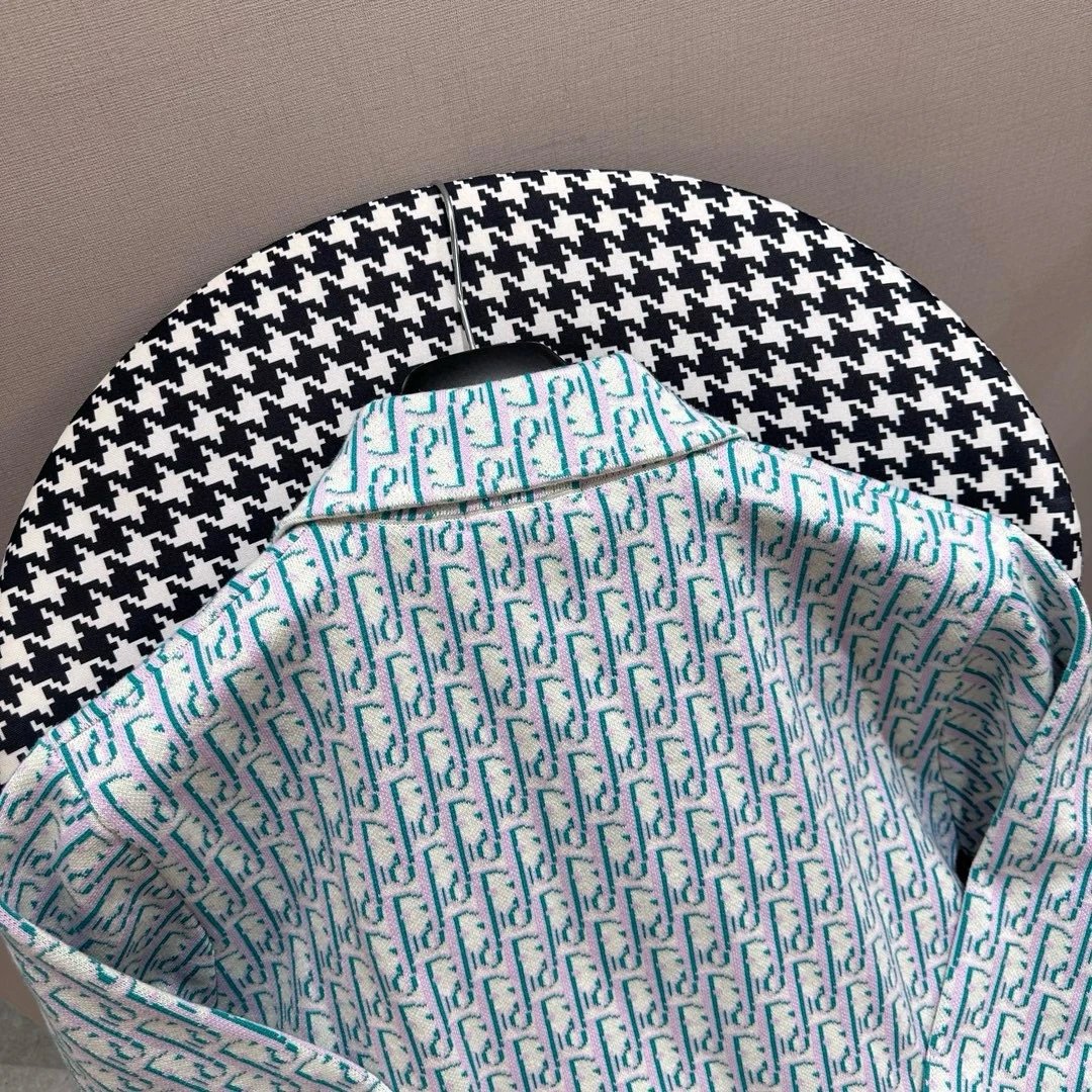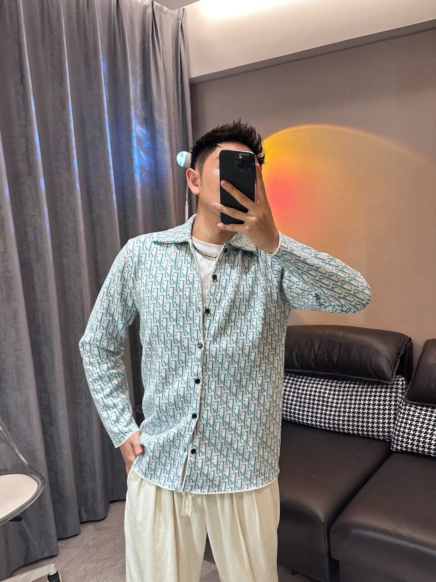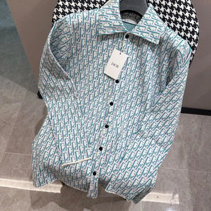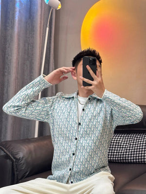 Dior Shirt Vintage Knitted Sweater Jacquard Shirt Long Sleeve Turn-down Collar Thickened Lazy Style OS Loose Fit Jacket Unisex Same Style Inner Versatile Casual Top