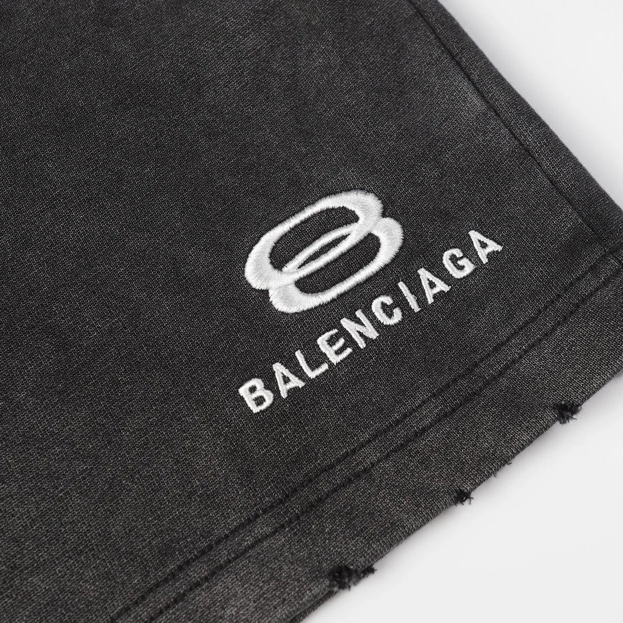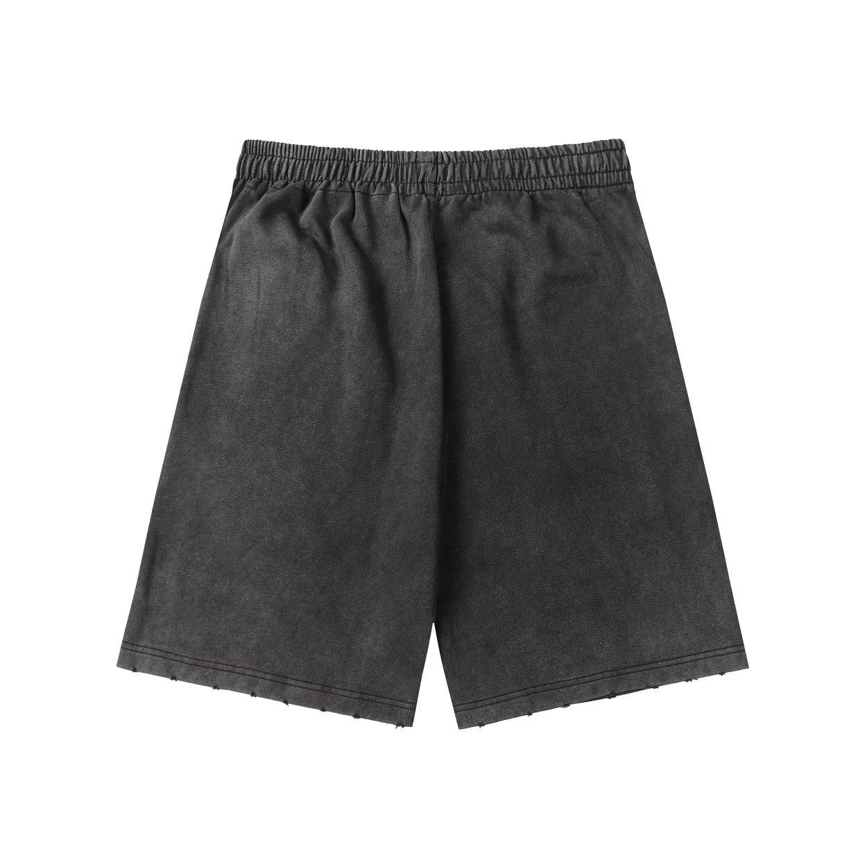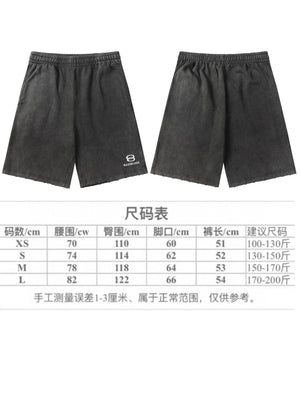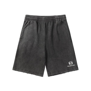 **Version BALENCI*GA Paris世家 Vintage Loop Wave Embroidered Shorts Five-Point Drawstring Heavy American Casual Summer Pants Five-Point Casual Sports Pants Unisex B Brand Sweatpants
