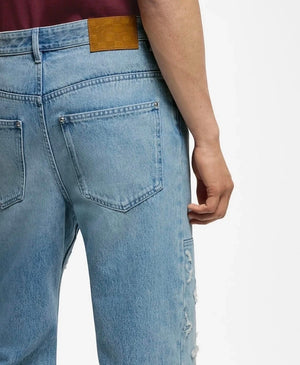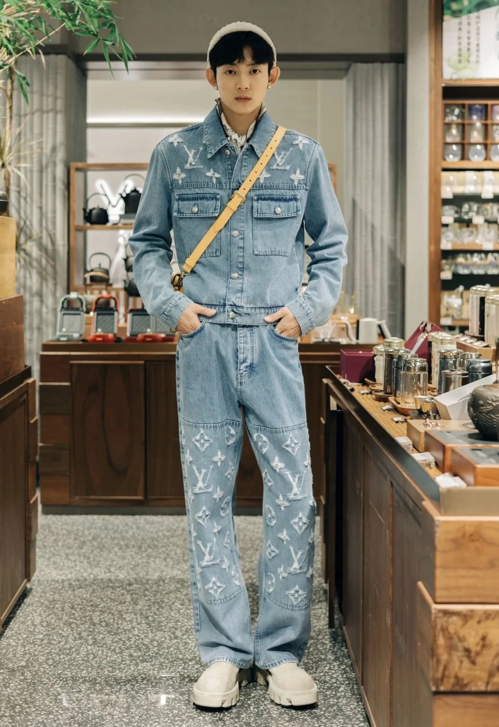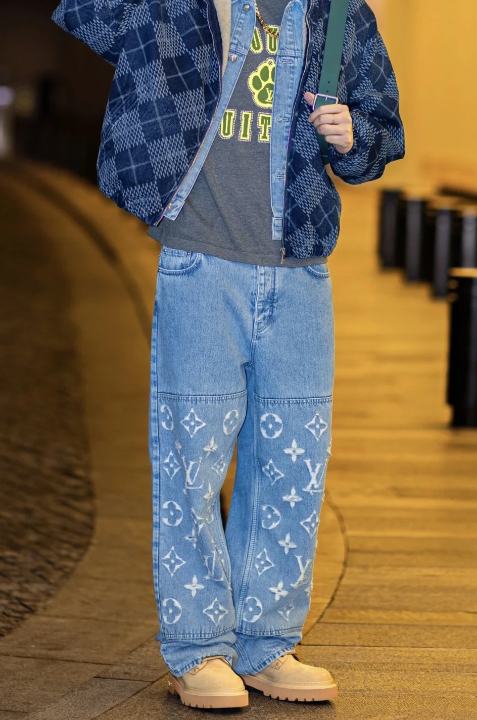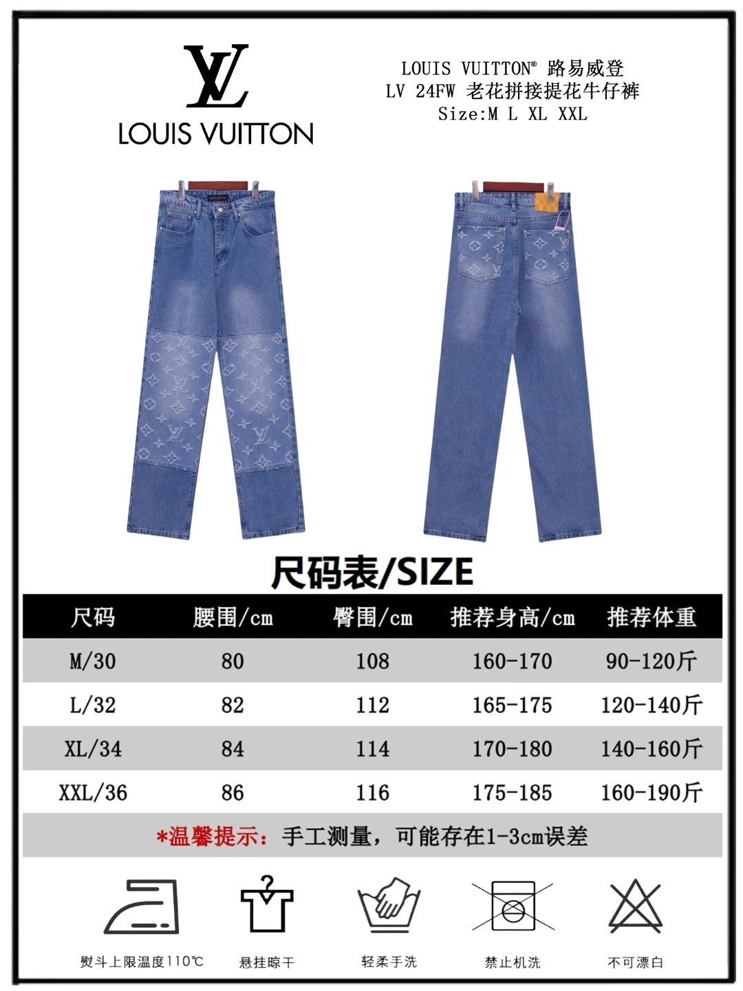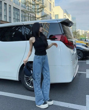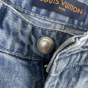 Louis Vuitton LV Jeans Vintage Patchwork Jacquard Straight Washed Blue Jeans Autumn Winter New Unisex Loose Casual Wide Leg High Waist Pants