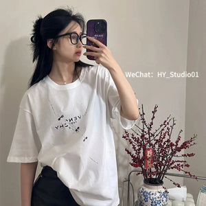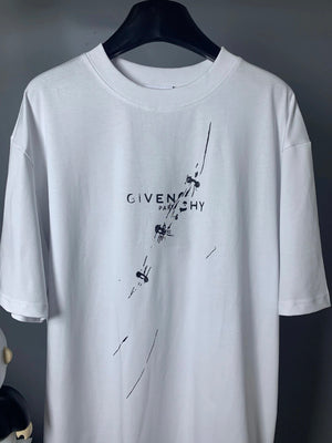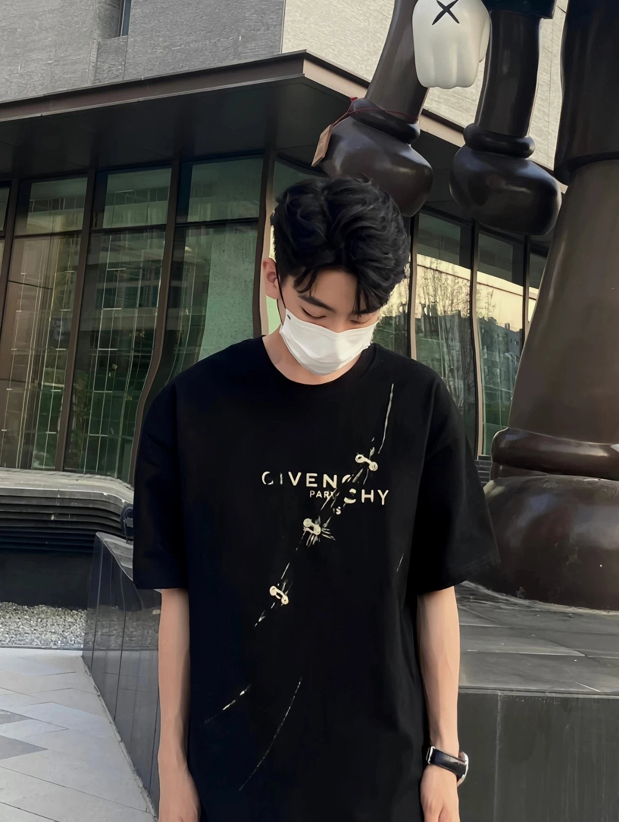 Givenchy T-shirt Visual Trap Print on Chest logo round Neck Short Sleeve25ss New Pure Cotton Unisex Style T T-shirt OS Loose Fit Base Shirt Top Half Sleeve T-Shirt