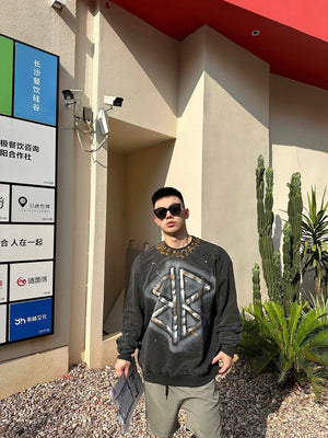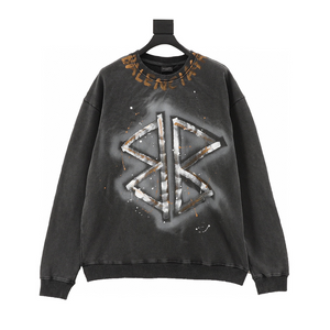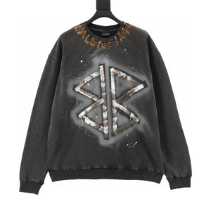 Balenciaga Hoodie Washed Hand-Painted Letter Crew Neck Sweater for Men and Women