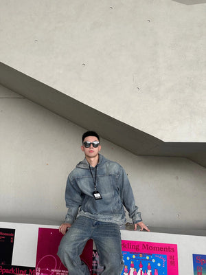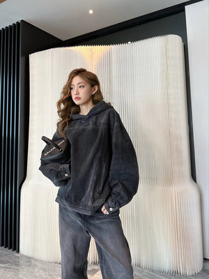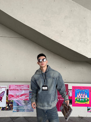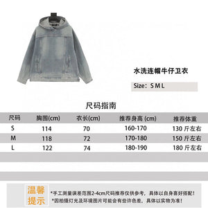 Balenciaga Hoodie Washed Hooded Denim Hoodie Same Style for Men and Women