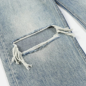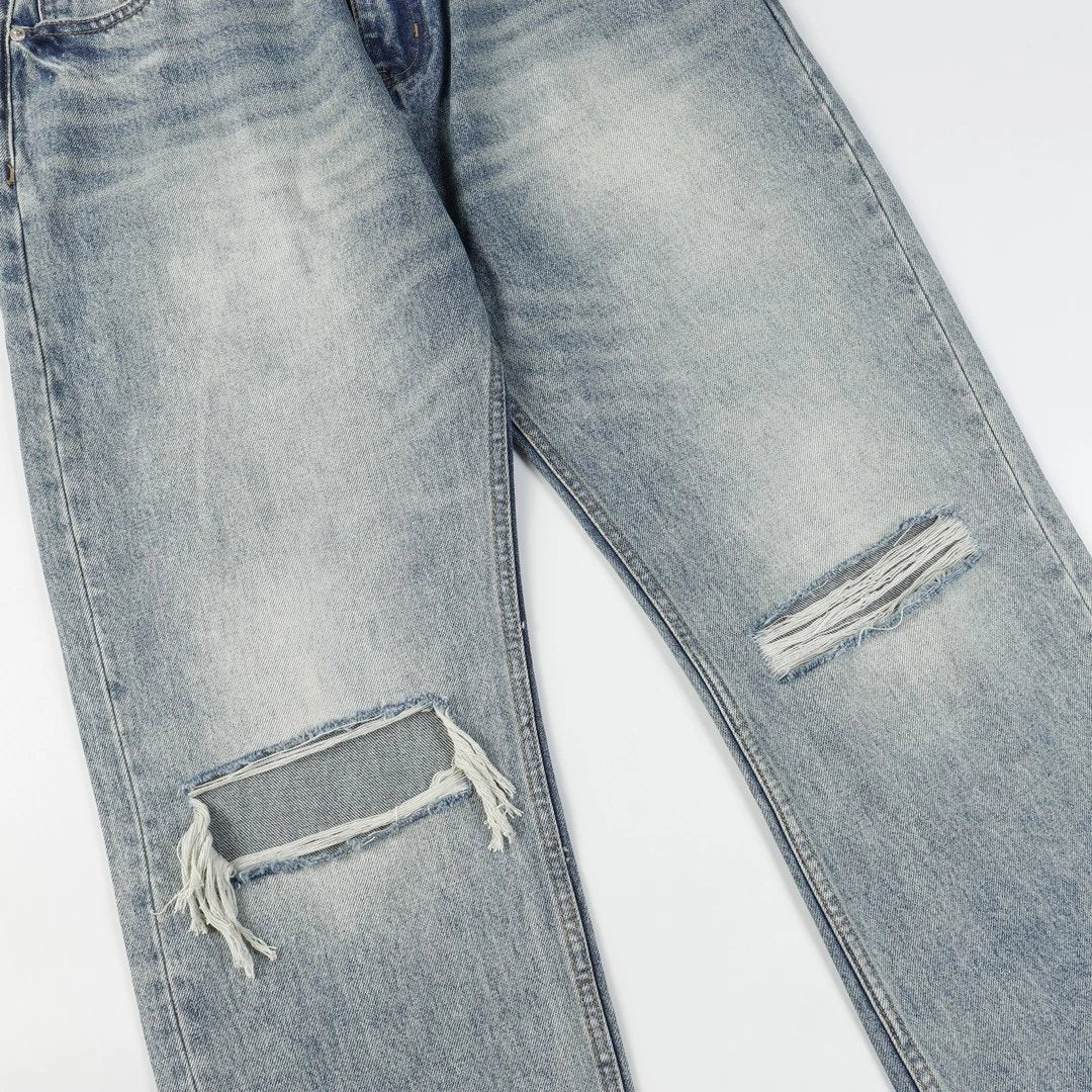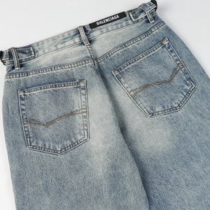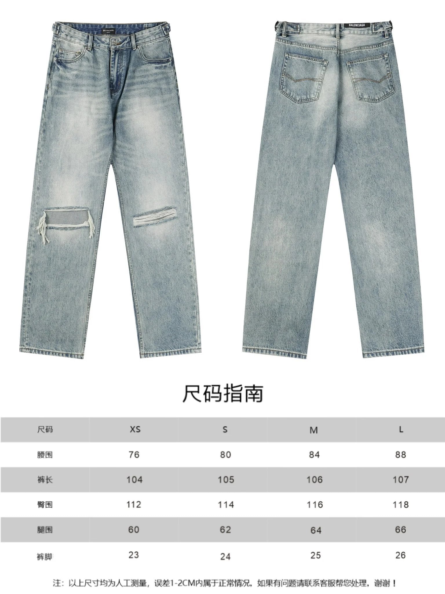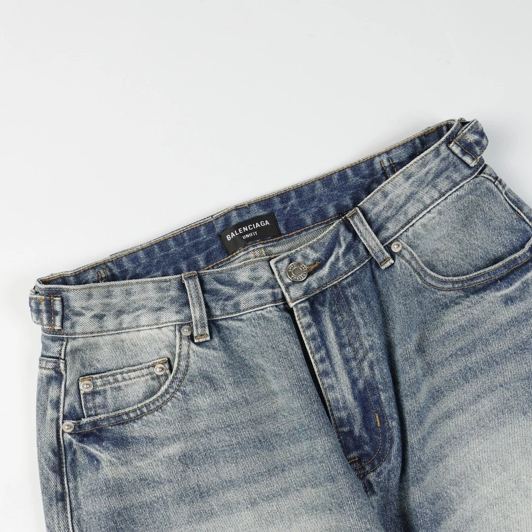 Top Version Balen*iaga Paris Saint-Germain Washed Horsehair Cat's Whisker Cut Straight Blue Jeans Autumn Winter New Unisex Loose Casual Wide Leg High Waist Pre-Purchase Instructions