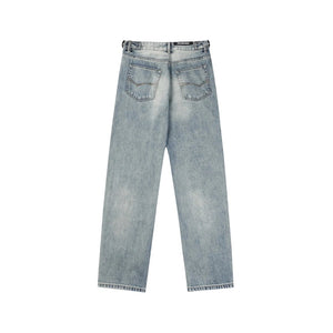 Balenciaga Jeans Washed Horsehair Cat Whisker Cut Straight Blue Jeans Autumn Winter New Unisex Loose Casual Wide Leg High Waist Pants