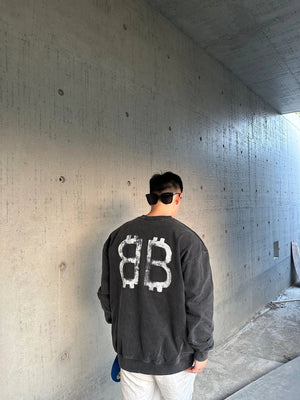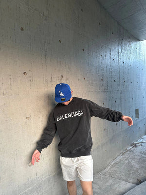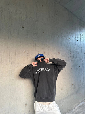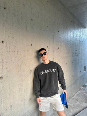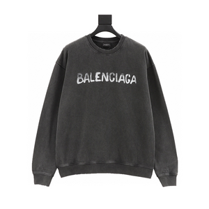 Balenciaga Hoodie Washed Letters Printed Crew Neck Sweatshirt Same Style for Men and Women