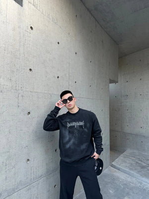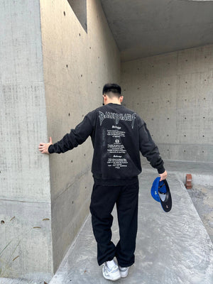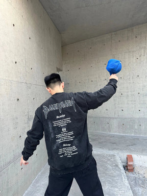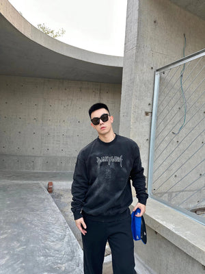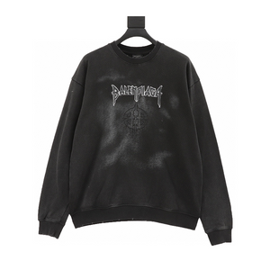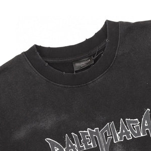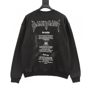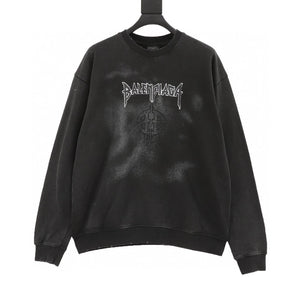 Balenciaga Hoodie Washed Letters Printed Crew Neck Sweatshirt Same Style for Men and Women