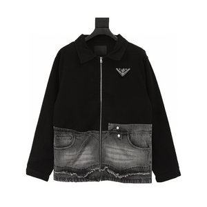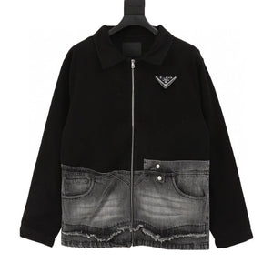 PRADA Jackets Washed Triangle Mark Denim Coat for Men and Women