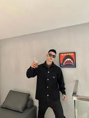 PRADA Shirt Washed Triangle Mark Denim Shirt for Men and Women