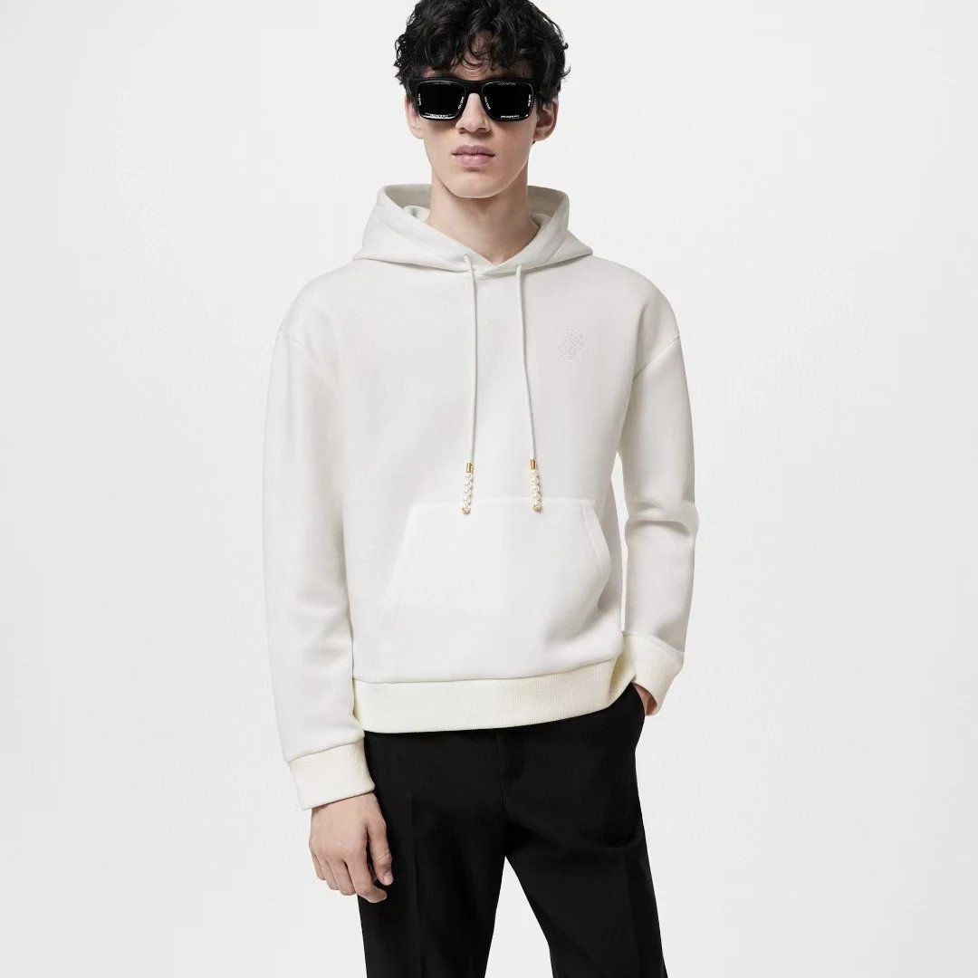 Louis Vuitton LV Hoodie White Pearl Hooded Sweatshirt Jacket Hoodie Unisex Sports Casual OS Loose fit versatile style