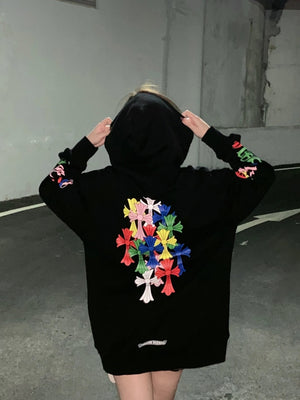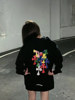 Chrome Hearts CH White Cross Sanskrit Letter Print Cardigan Sweatshirt