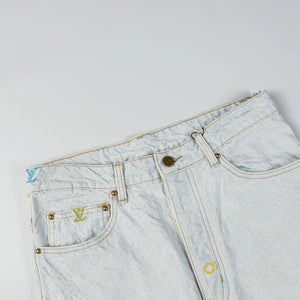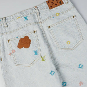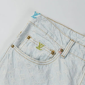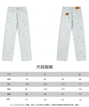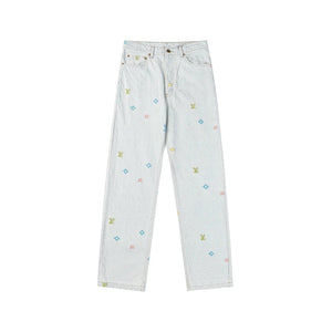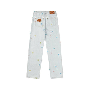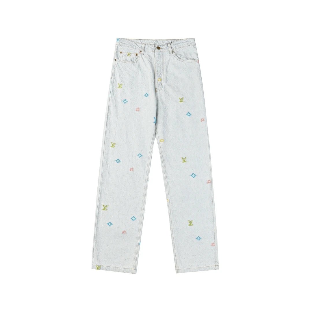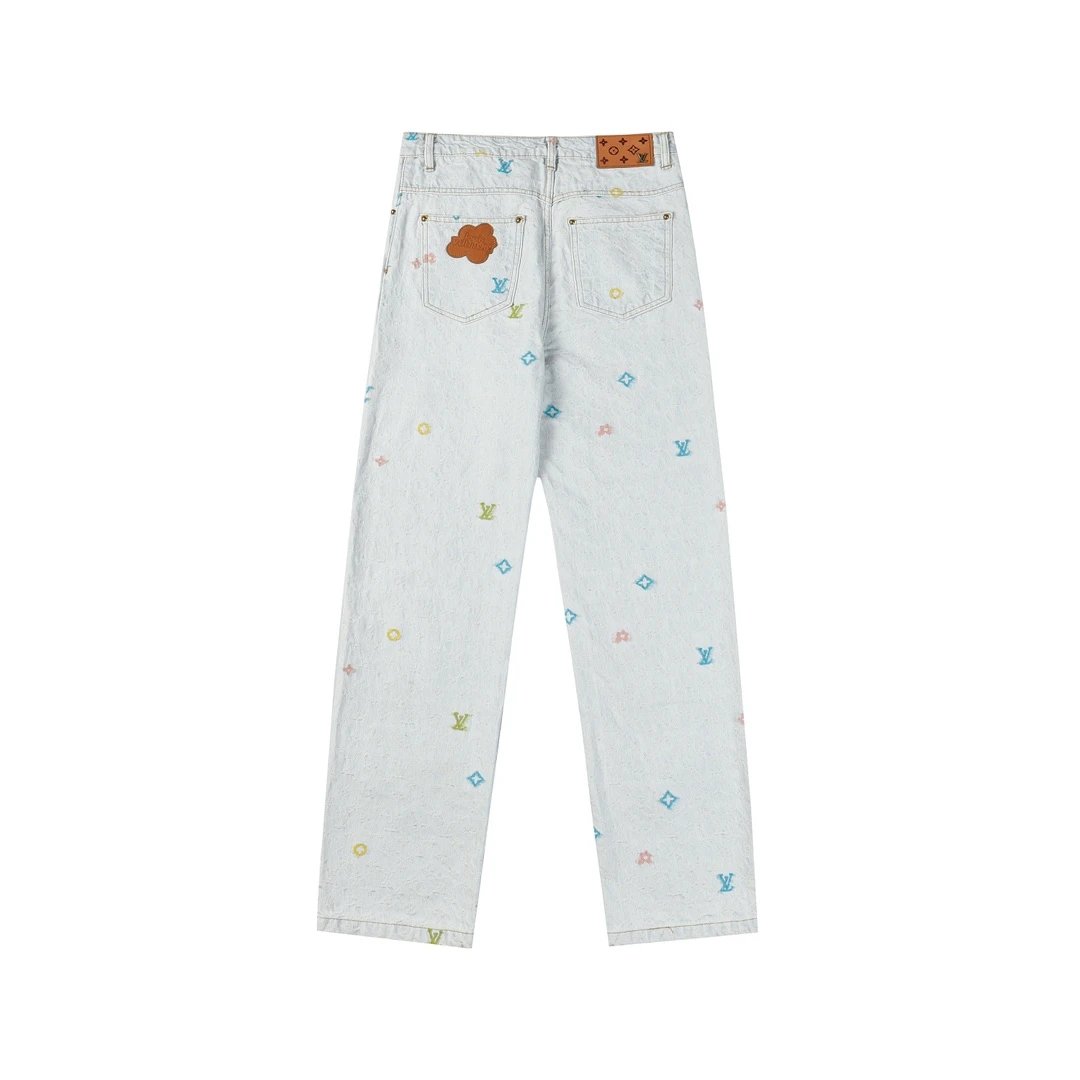 Louis Vuitton LV Jeans with Bamboo Joint sstyler Collaboration Jacquard Straight Washed Blue Jeans Autumn Winter New Unisex Loose Casual Wide Leg High Waist Pants