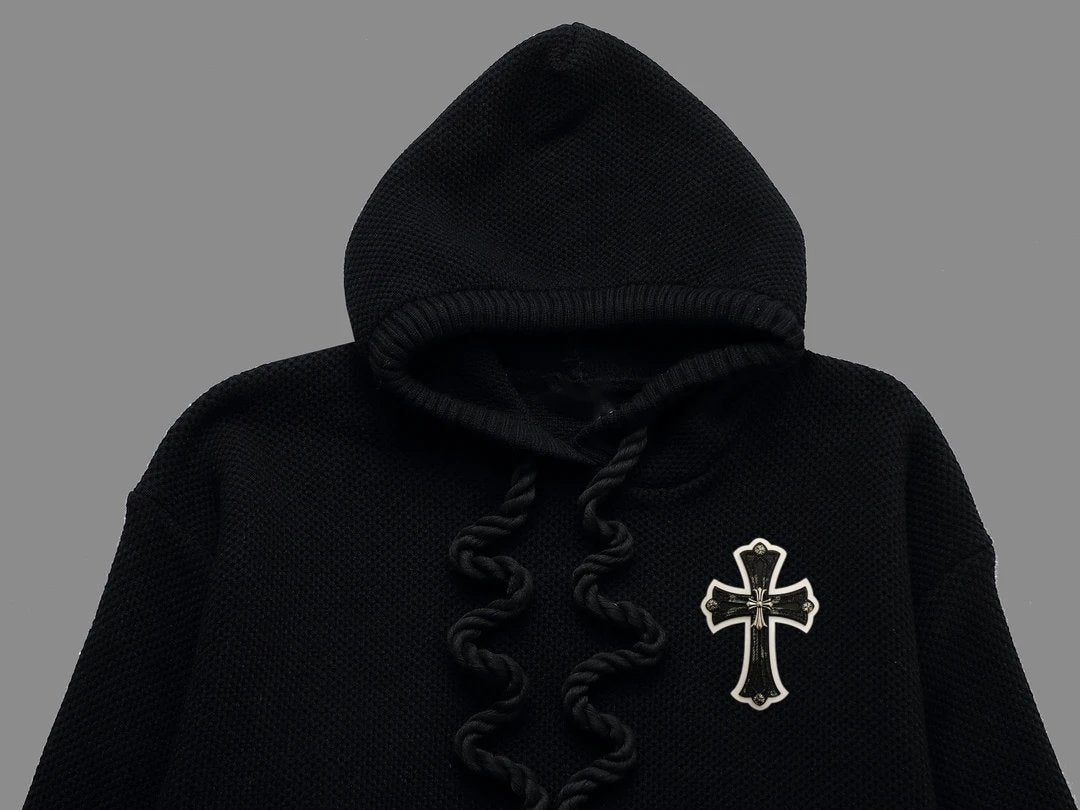 Chrome Hearts Hoodie Wool Knit Thickened Hooded Sweatshirt Unisex Winter Versatile Casual Jacket