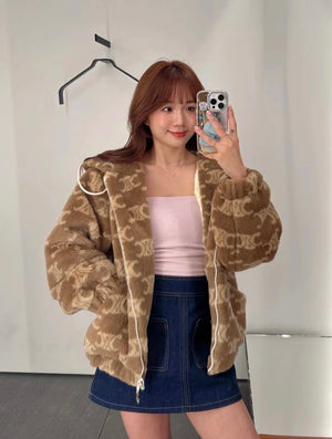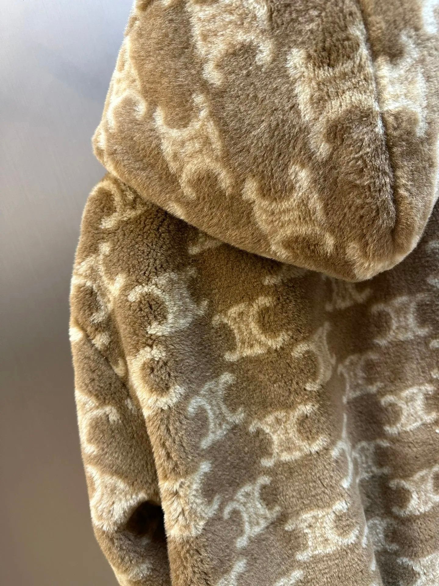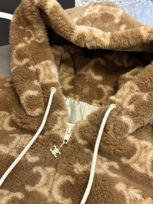 Top Version Celine TRIOMPHE Wool Teddy Jacket Unisex Autumn Winter New Sports Casual Loose Versatile