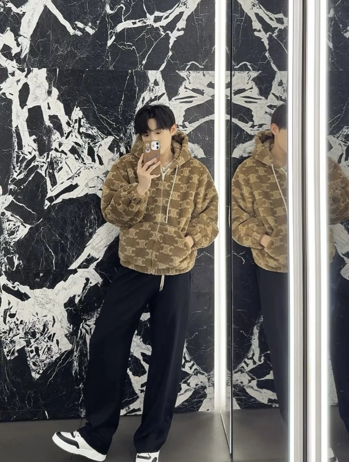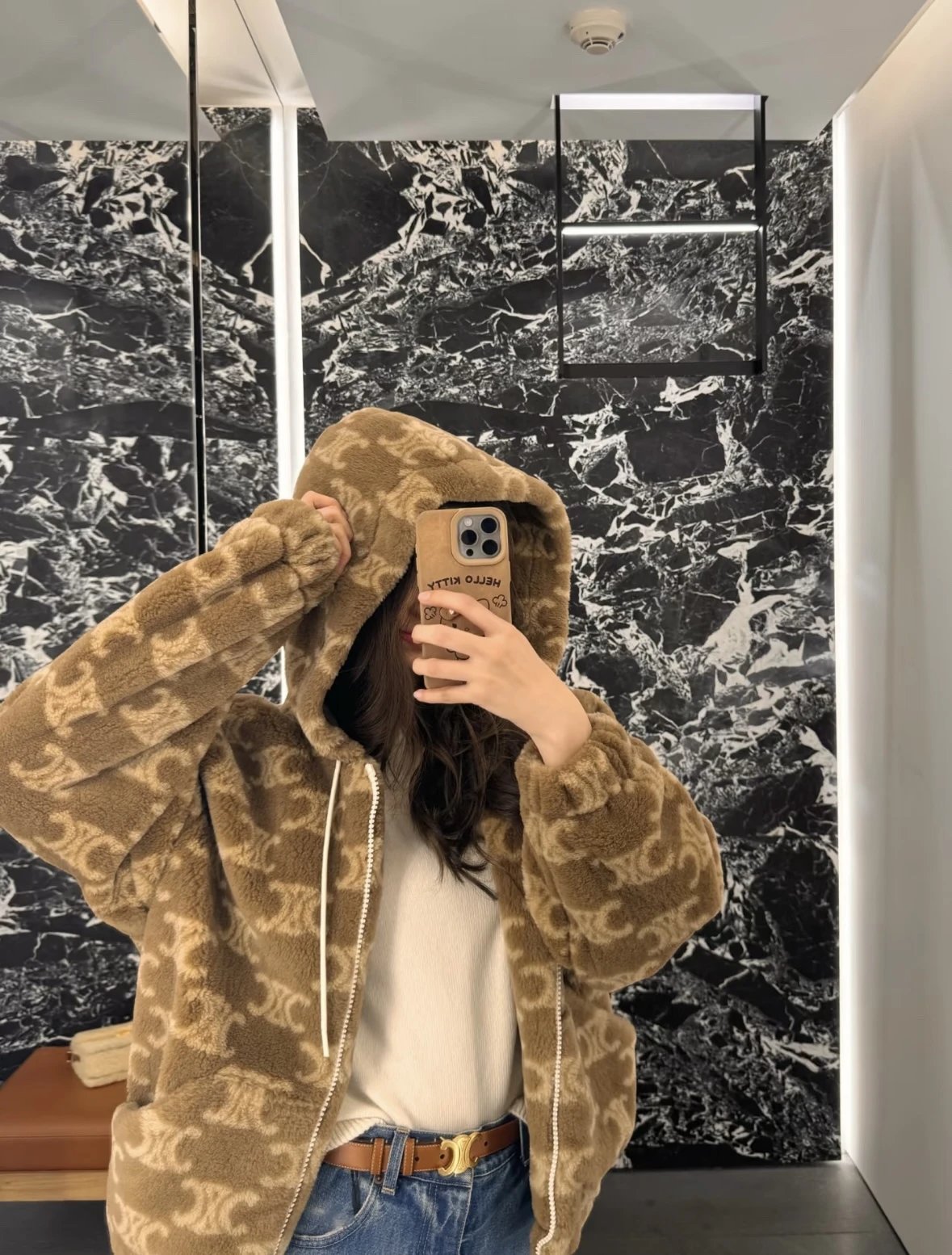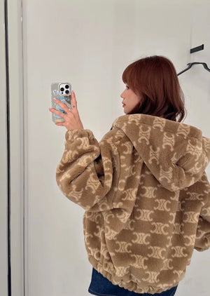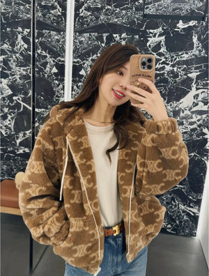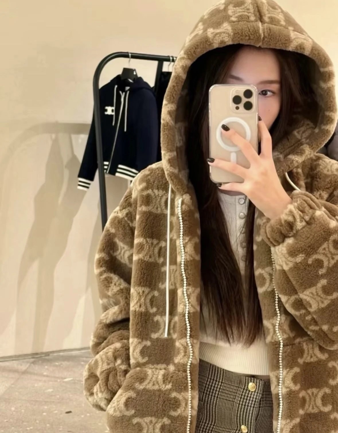 Celine Jackets Wool Teddy Coat Unisex Autumn Winter New Sports Casual Loose Versatile