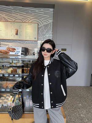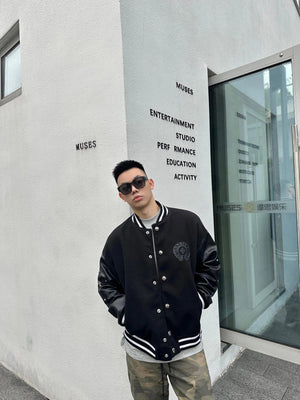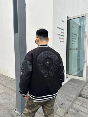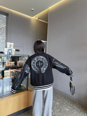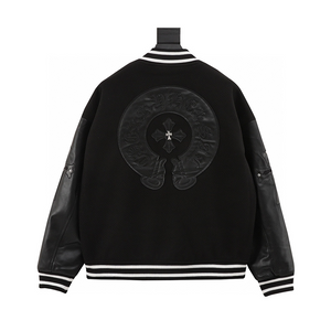 Chrome Hearts Jackets Word Frame Leather Stitching Baseball Uniform Jacket Coat for Men and Women