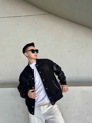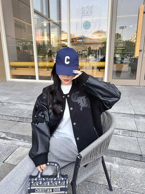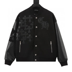 Chrome Hearts Jackets Word Frame Veneer Logo Leather Sleeve Baseball Uniform Jacket Coat Men and Women Same Style