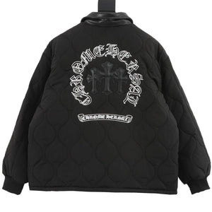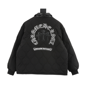 Chrome Hearts Down Jacket Word Rack fan Wen Embroidered Lapel Cotton Coat Jacket Same Style for Men and Women