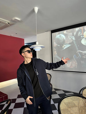 Thom Browne Jackets Yarn-Dyed Four-Bar Drawstring Zipper Coat for Men and Women