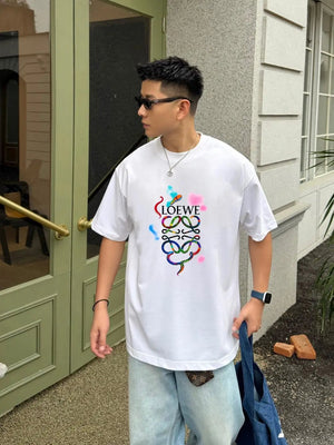 LOEWE T-shirt Year of the Snake Limited Edition Letter Print Logo round Neck Short Sleeve25ss New Pure Cotton Unisex Style T T-shirt OS Loose Fit Base Shirt Short Sleeve Top T-Shirt