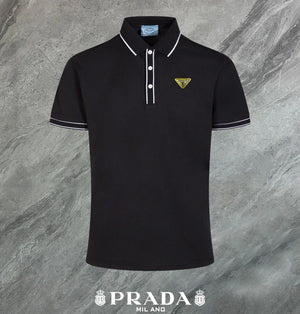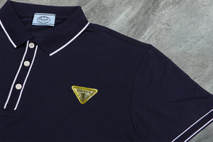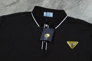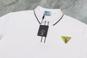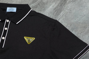 PRADA T-shirt Yellow Triangle Badge on the Chest logo Patch POLO Shirt Lapel Short Sleeve25ss New Unisex Summer Short Sleeve OS Loose T Business Half Sleeve Shirt Plus Size T-Shirt