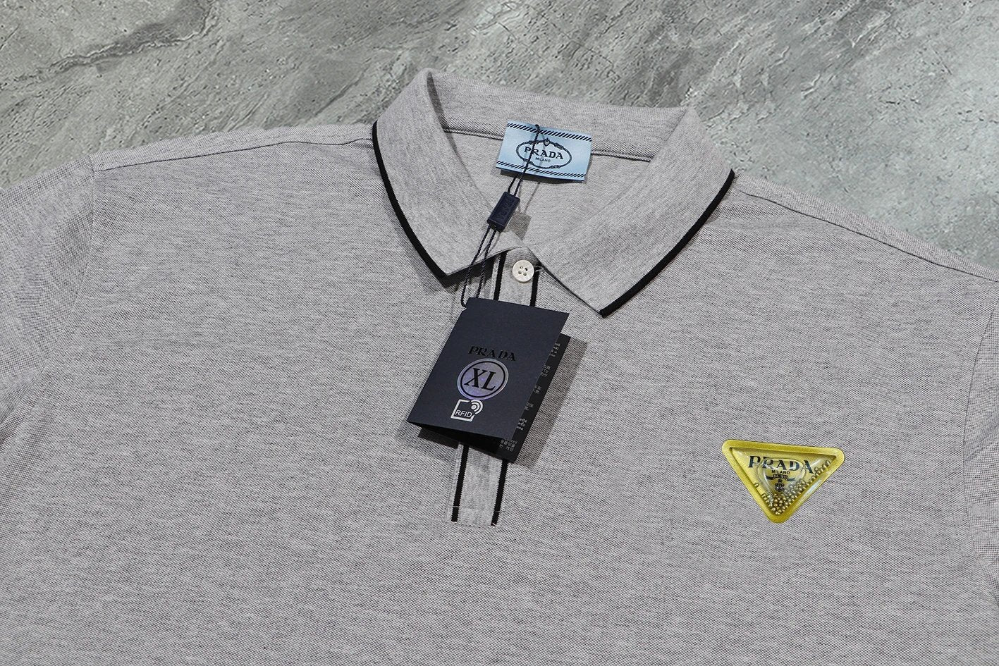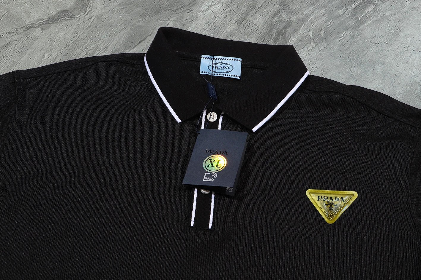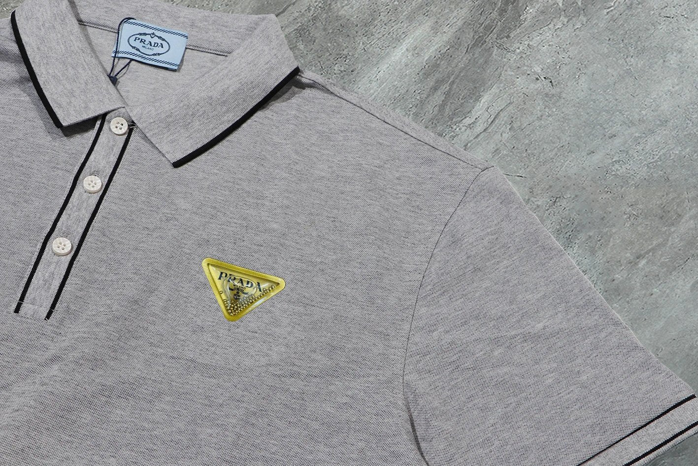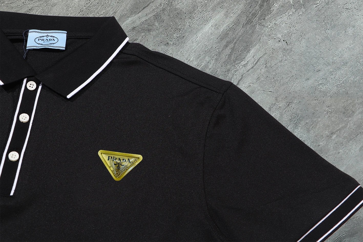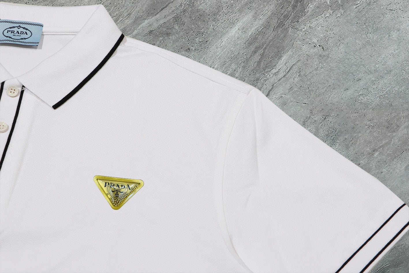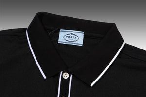 Prada】2024 Summer New High-Quality Three-Label Complete Lapel Short-Sleeve Polo Shirt, Custom Fabric from the Counter, Highly Breathable and Comfortable, Flawless Details, Brand Element Design Concept Reflecting High Quality. Delicate and soft to the touch! Features a casual cut with an excellent fit on the body! The chest is filled with a three-dimensional brand logo, highlighting quality and luxury