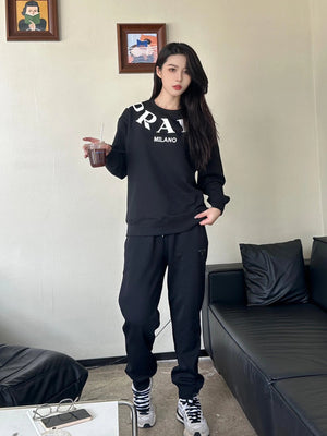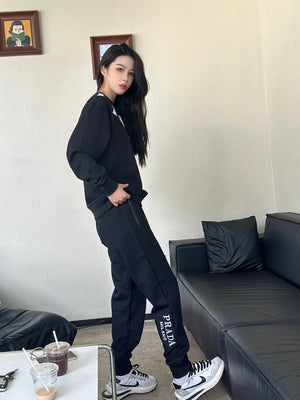 PRADA Sweatpants Zipper Pocket Triangle Mark Casual Trousers for Men and Women