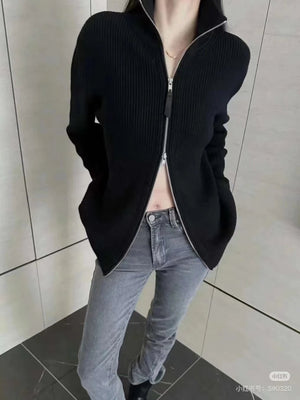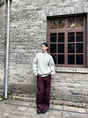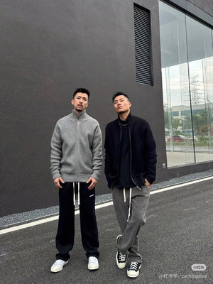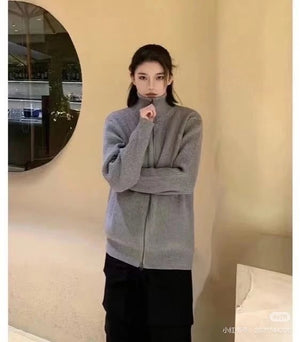 Margiela Zipper Sweater Coat Unisex Outerwear Long Sleeve Soft Lazy Style OS Fit Loose Coat Thickened Versatile Casual Wear