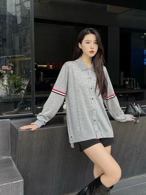 Thom Browne Sweater 24FW Armband Australian Wool Lapel Sweater Cardigan for Men and Women