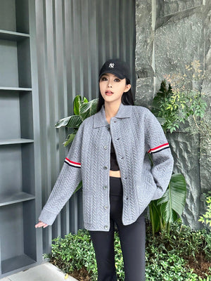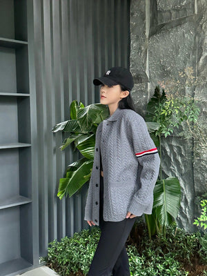 Thom Browne Jackets 24FW Herringbone Pattern Wool Overcoat Same Style for Men and Women
