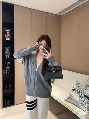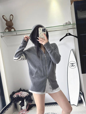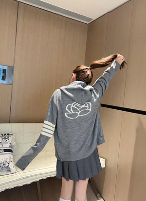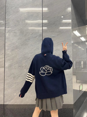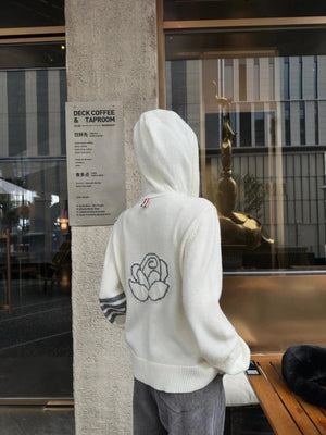 Thom Browne Sweater 24FW Rose Australian Mao Hooded Sweater Coat Same Style for Men and Women