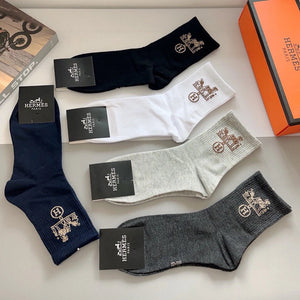 Hermes Sock 【a Box5Double】Classic H Letters logo Breathable and Stylish Pure Cotton Mid-Calf Socks25ss New Cotton Socks Spring Summer Autumn Sports Casual Versatile Business Thin Deodorant Sweat-Absorbing