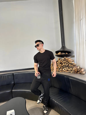 Simple and High-End Representative, All-Matching Contraction Trouser Is the Same Style for Men and Women ~ Super Elegant, with Winter Overcoat, It Is Very Beautiful to Wear It to Relieve the Heavy Feeling of Wearing Overcoat, instantly Active Young This Sweatpants Adopt Customer-Supplied Imported Knitted Terry Cotton Refined Fabric with Smooth and Delicate Surface and Comfortable and Breathable Terry Cotton Lining, Excellent Moisture Absorption and Perspiration Performance, skin-Friendly Feeling Is Very Good ~~ Cut out a Slim and Slim Style, the Upper Body Is Handsome and Stylish Waist of Trousers the inside Is Contrast Color Braid Design, Double-Layer Sewing, Forming a Sharp Contrast with Ivory White Ribbon with P Letter Logo Details, the Logo Embroidery Embellishment at the Back Pocket Is Unique to Enhance the Overall Style and Fashion! Description before Purchasing the Same Style for Men and Women