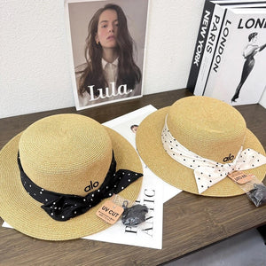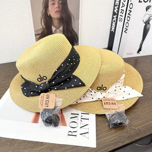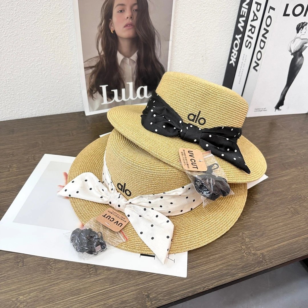 Top Version Alo Bowknot Logo Fisherman Hat Straw Hat Casual Sun Protection UV Protection Plain Face Covering Sunshade Outdoor Versatile Flat Top Bucket Hat