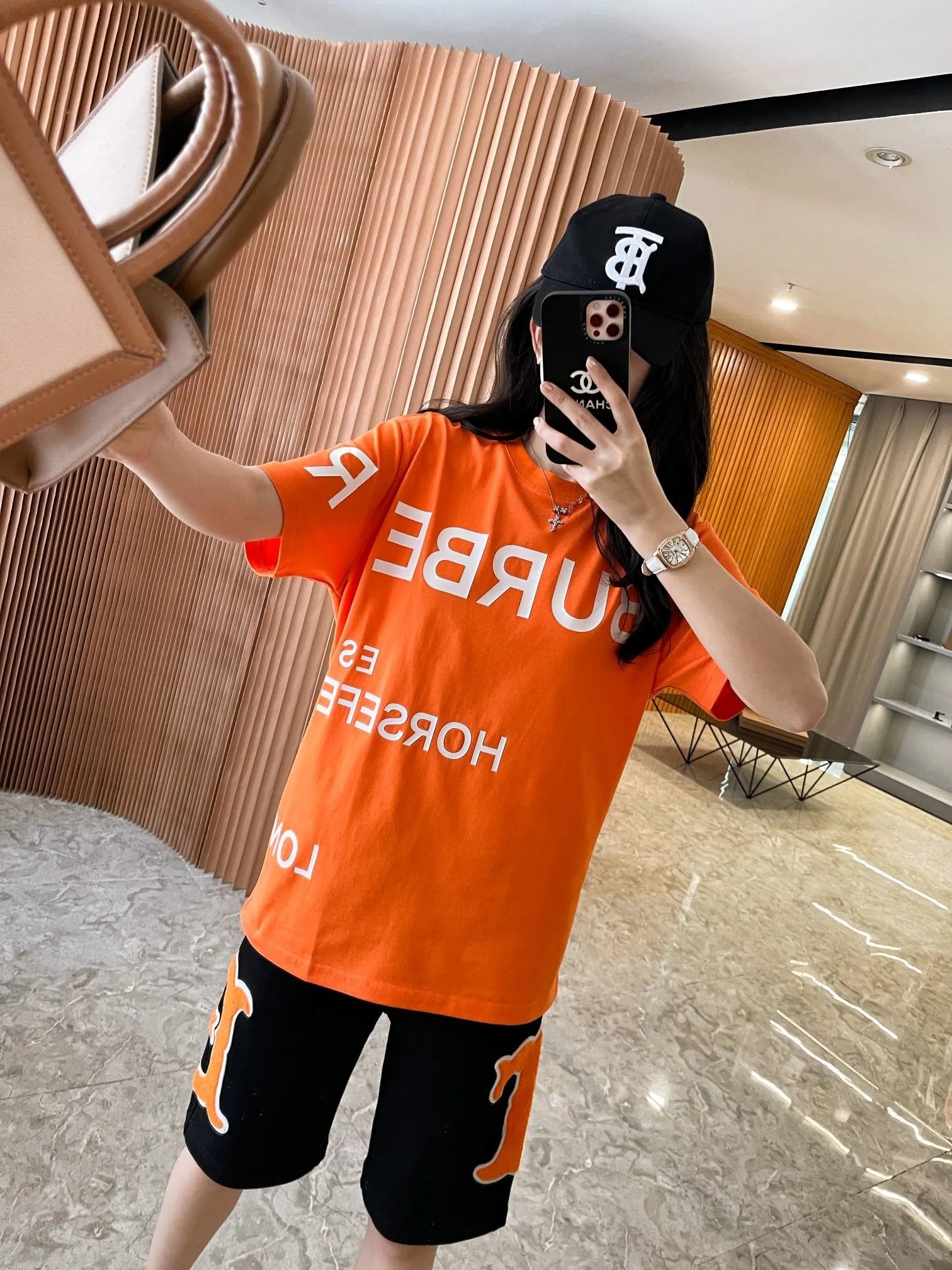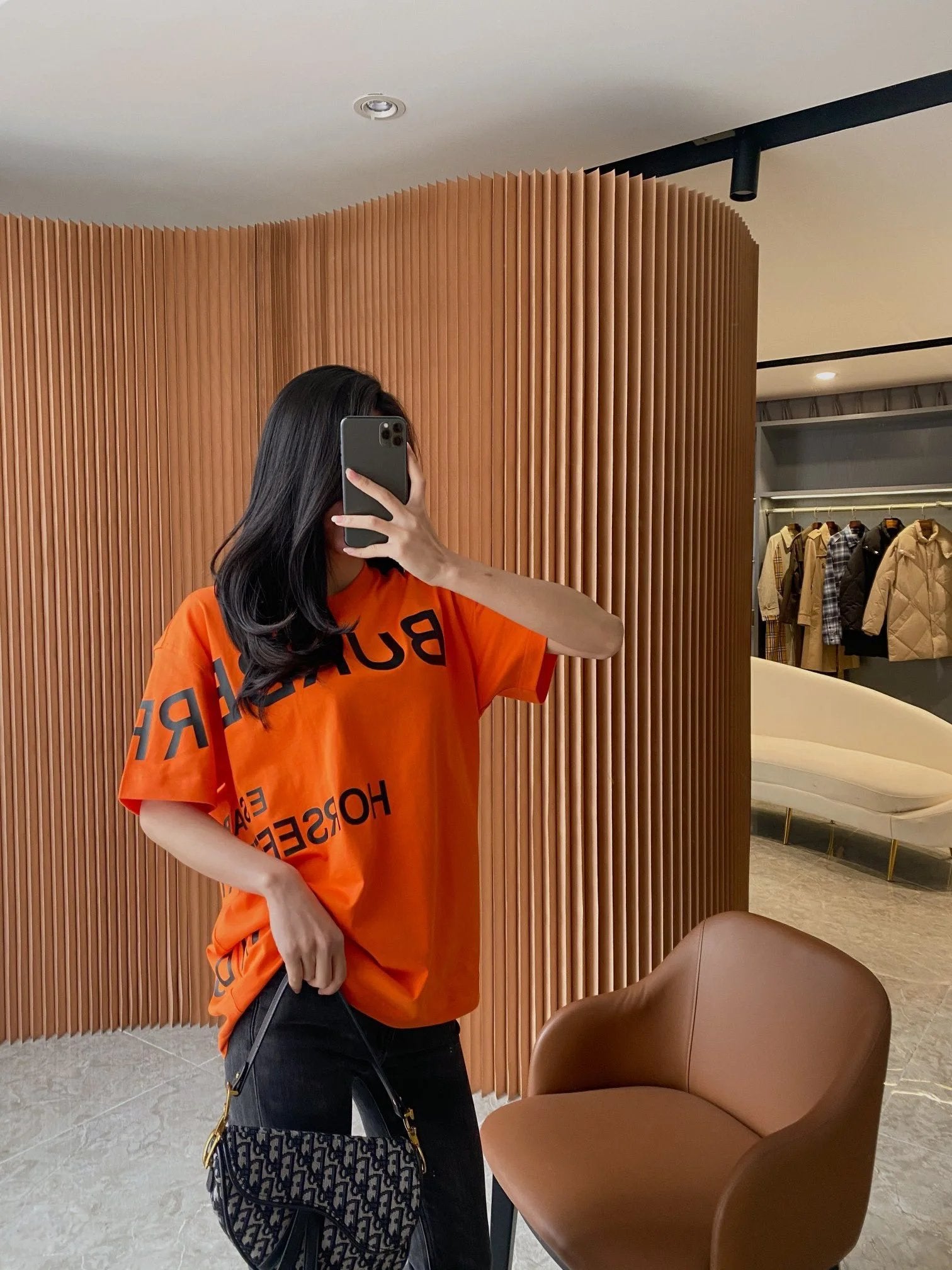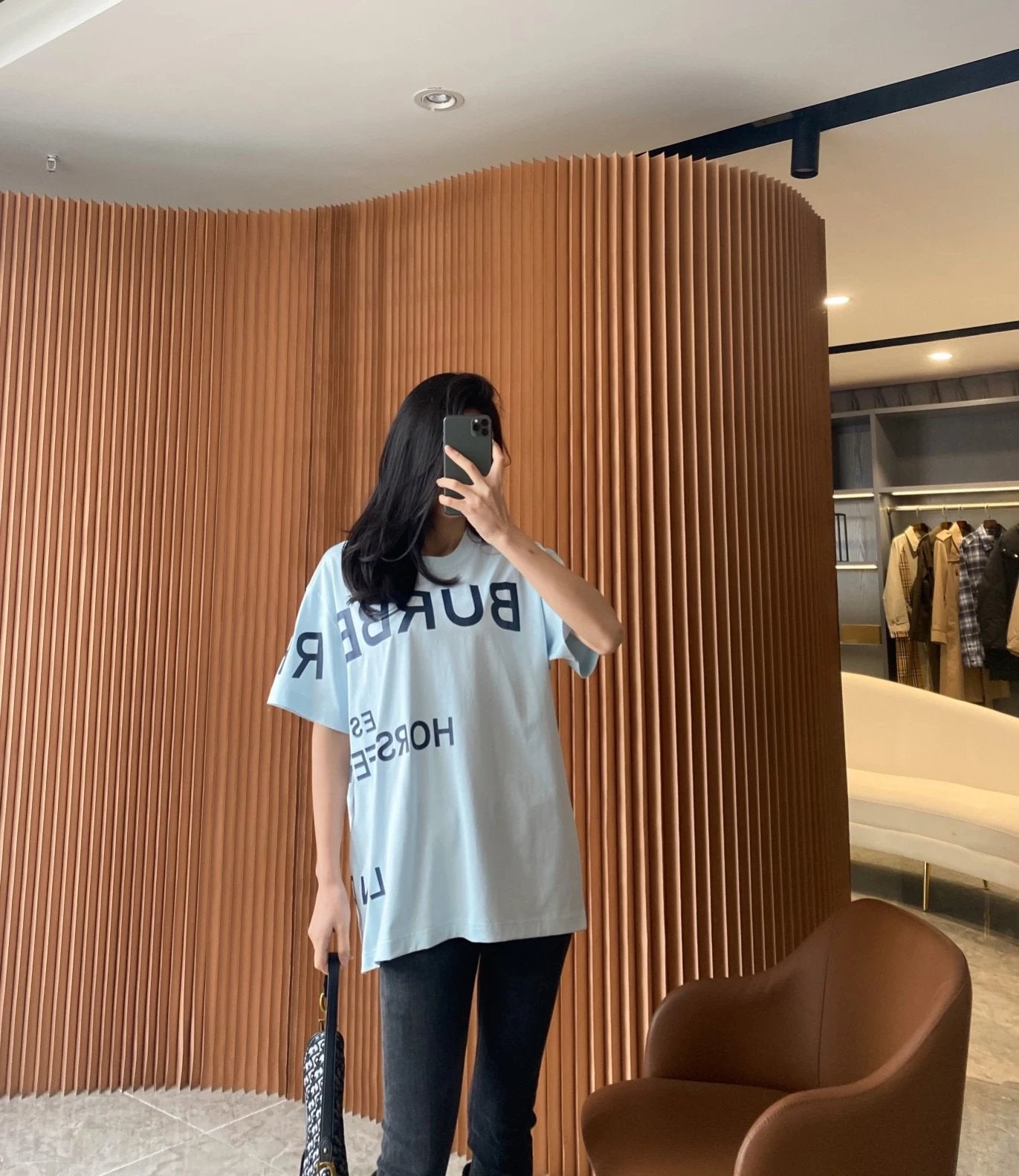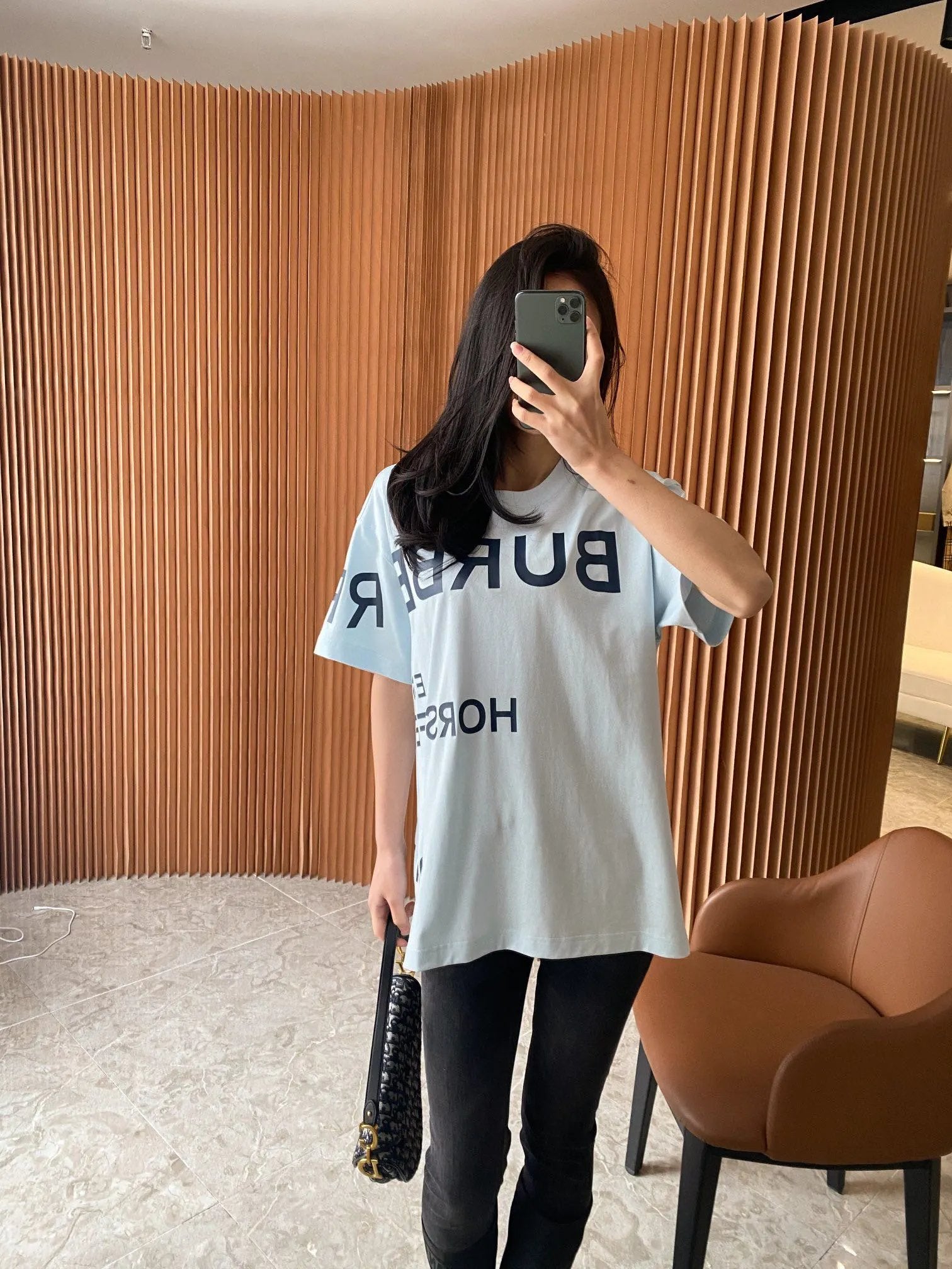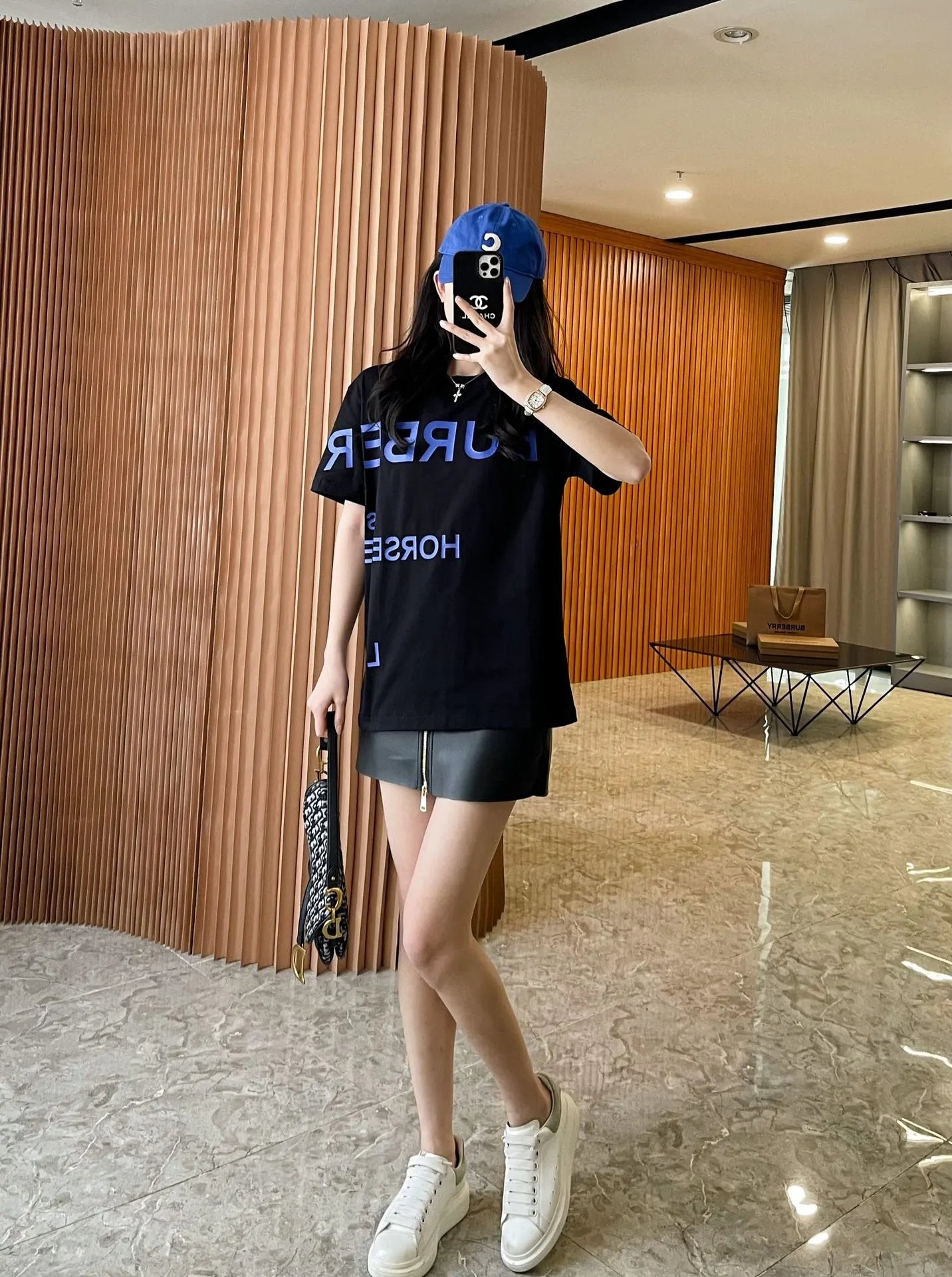 Burberry T-shirt Chest Brand Logo Print logo round Neck Short Sleeve25ss New Pure Cotton Unisex Style T Casual T-Shirt Base Layer Shirt OS Loose Fit Half Sleeve Top Plus Size