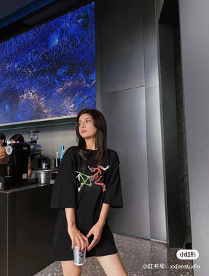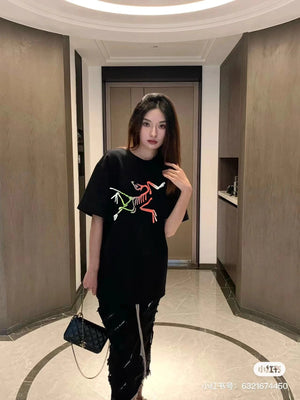 Arc'teryx Summer New 250g Double Yarn, Fashionable Hong Kong Style Round Neck Printed Casual Short Sleeve T-Shirt, Unisex Top