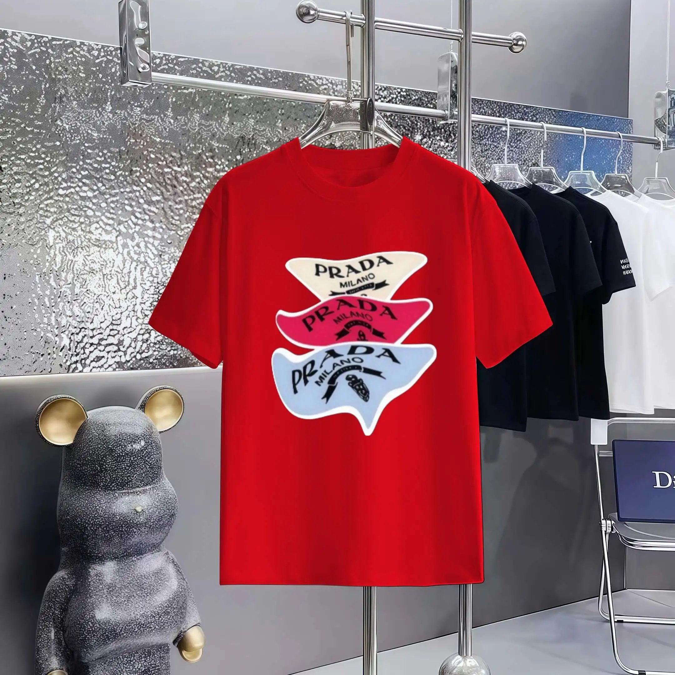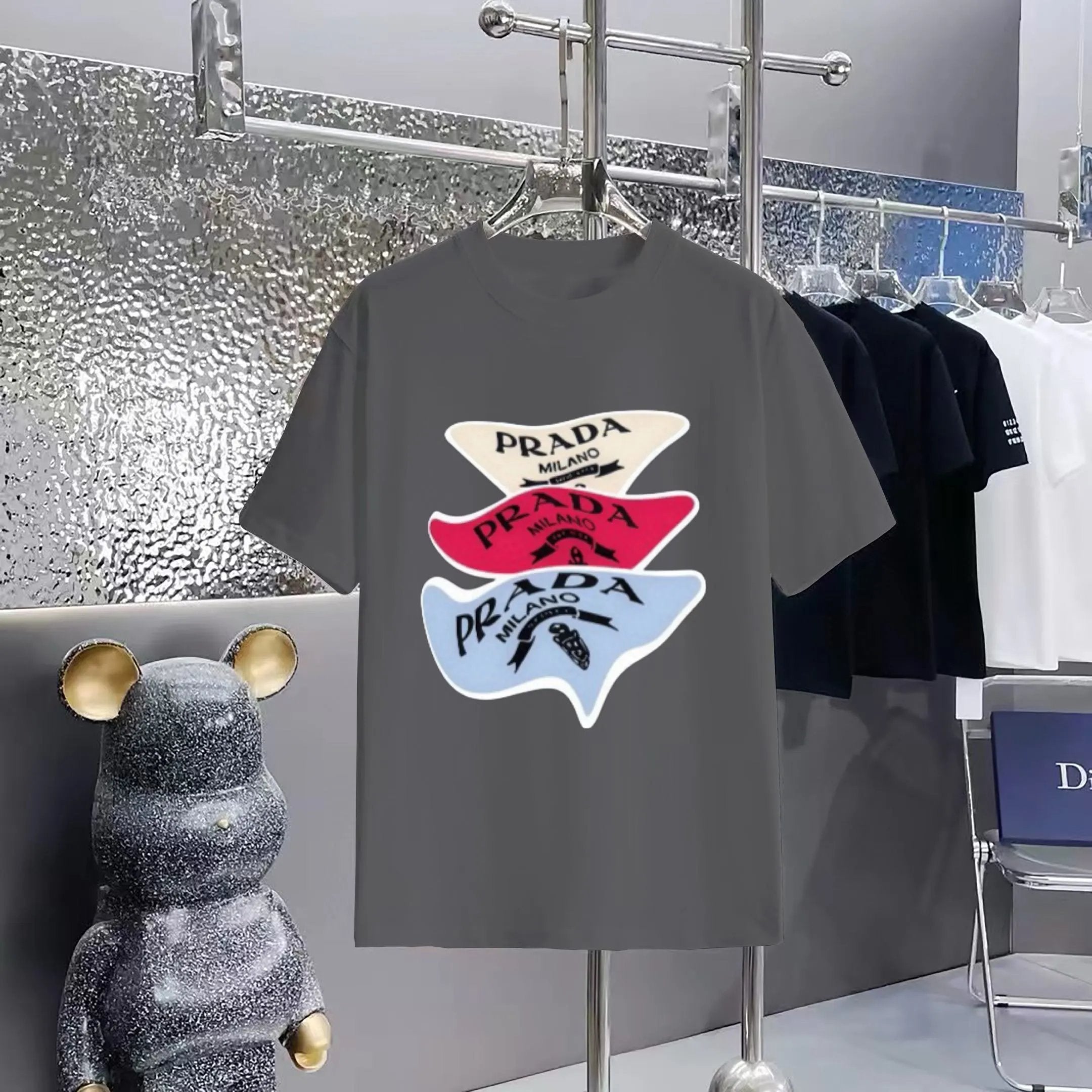 PRADA T-shirt Chest Brand Print logo round Neck Short Sleeve25ss New Pure Cotton Unisex Style T T-shirt OS Loose Fit Base Shirt Half Sleeve T-Shirt Top Half Sleeve