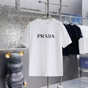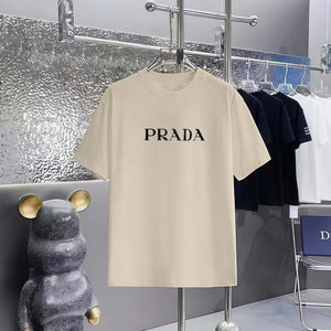 PRADA T-shirt Chest Brand Print logo round Neck Short Sleeve25ss New Pure Cotton Unisex Style T T-shirt OS Loose Fit Base Shirt Top Half Sleeve T-Shirt