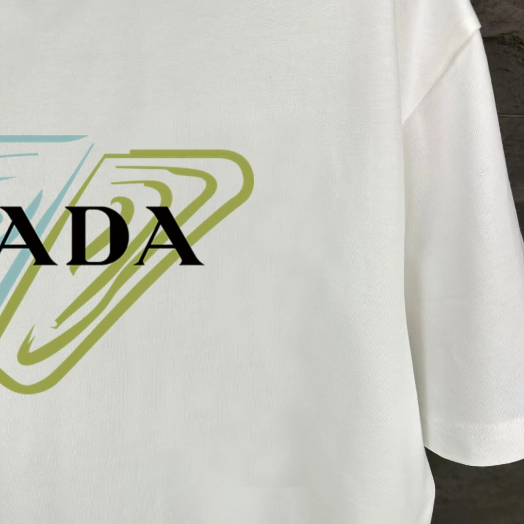 Prada 2025 New Couple Style Short Sleeve T-Shirt, Original Fabric, Digital Direct Print Technology, Same Style as Internet Celebrities and Stars, Fabric Made of 260g Pure Cotton, Super Comfortable Feel, Fashionable and Unique, Super Versatile and Good-Looking T-Shirt, Suitable for Both Men and Women, A Must-Have for Everyone.