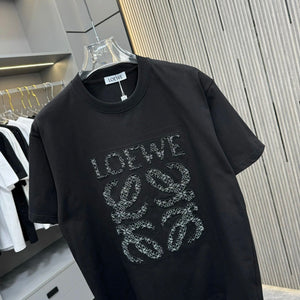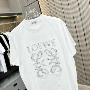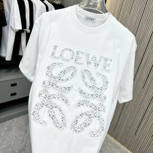 LOEWE T-shirt Chest Dot Print and Leather Patch Embroidery logo round Neck Short Sleeve25ss New Pure Cotton Unisex Style T Casual T-Shirt Base Layer Shirt OS Loose Fit Half Sleeve Top Plus Size