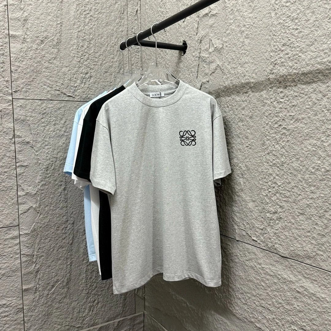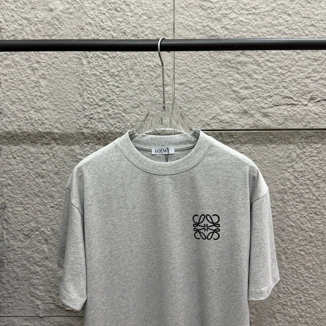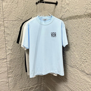 LOEWE T-shirt Chest Emblem Embroidery logo round Neck Short Sleeve25ss New Pure Cotton Unisex Style T Casual T-Shirt Base Layer Shirt OS Loose Fit Half Sleeve Top Plus Size