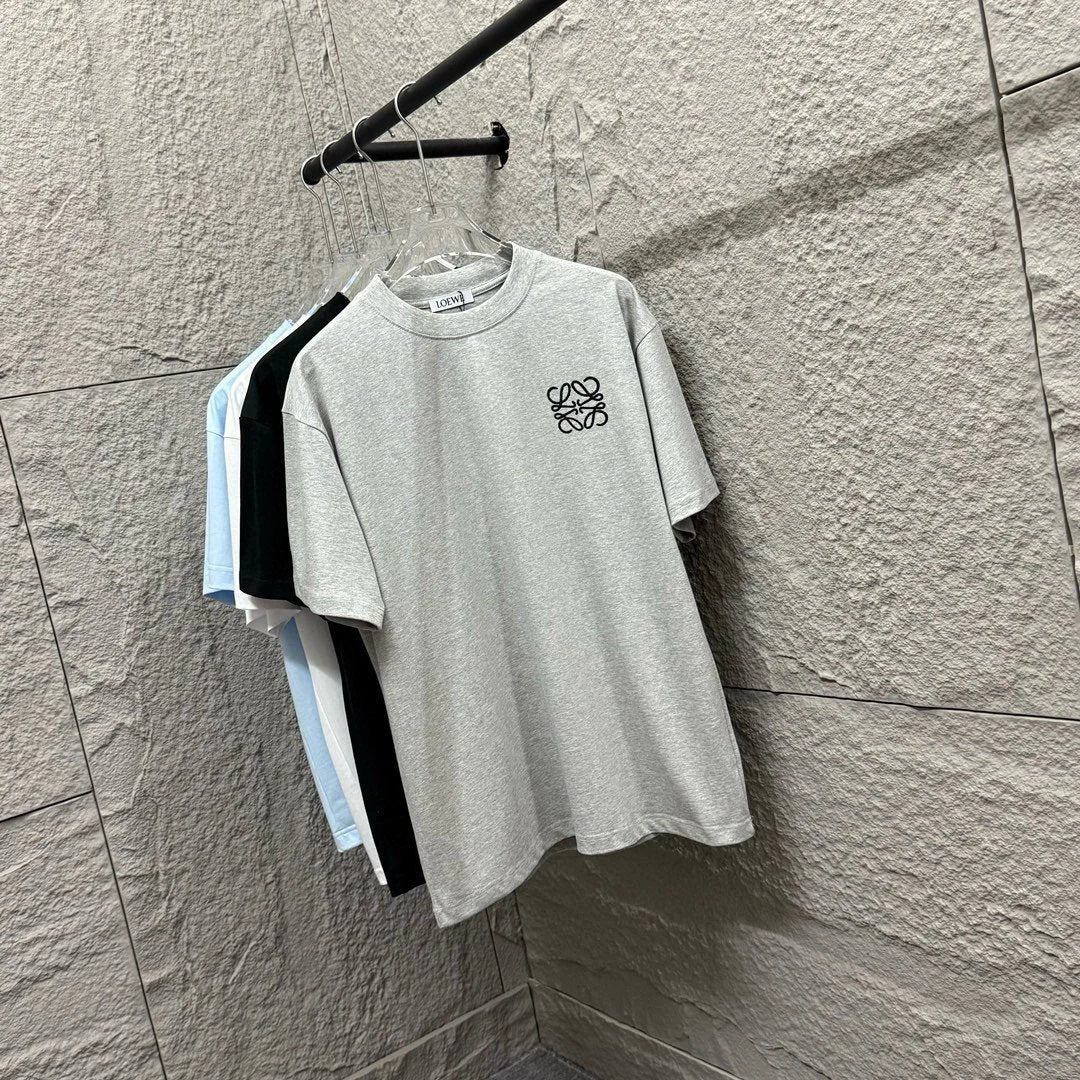 Loewe* 2025 Spring/Summer Classic Totem Simple Embroidery Personalized Logo Custom Double Yarn Plain Cotton Fabric Short Sleeve T-Shirt Unisex