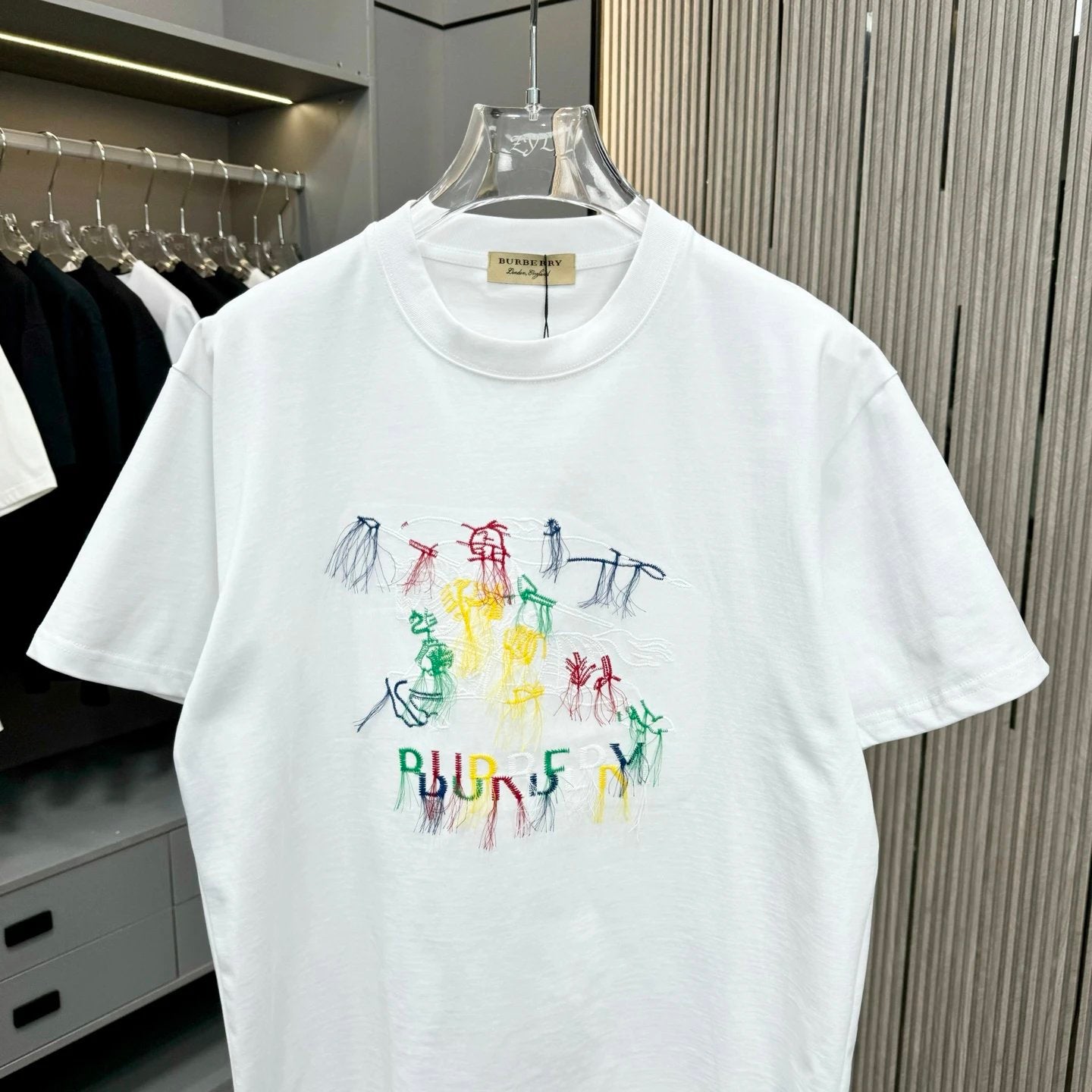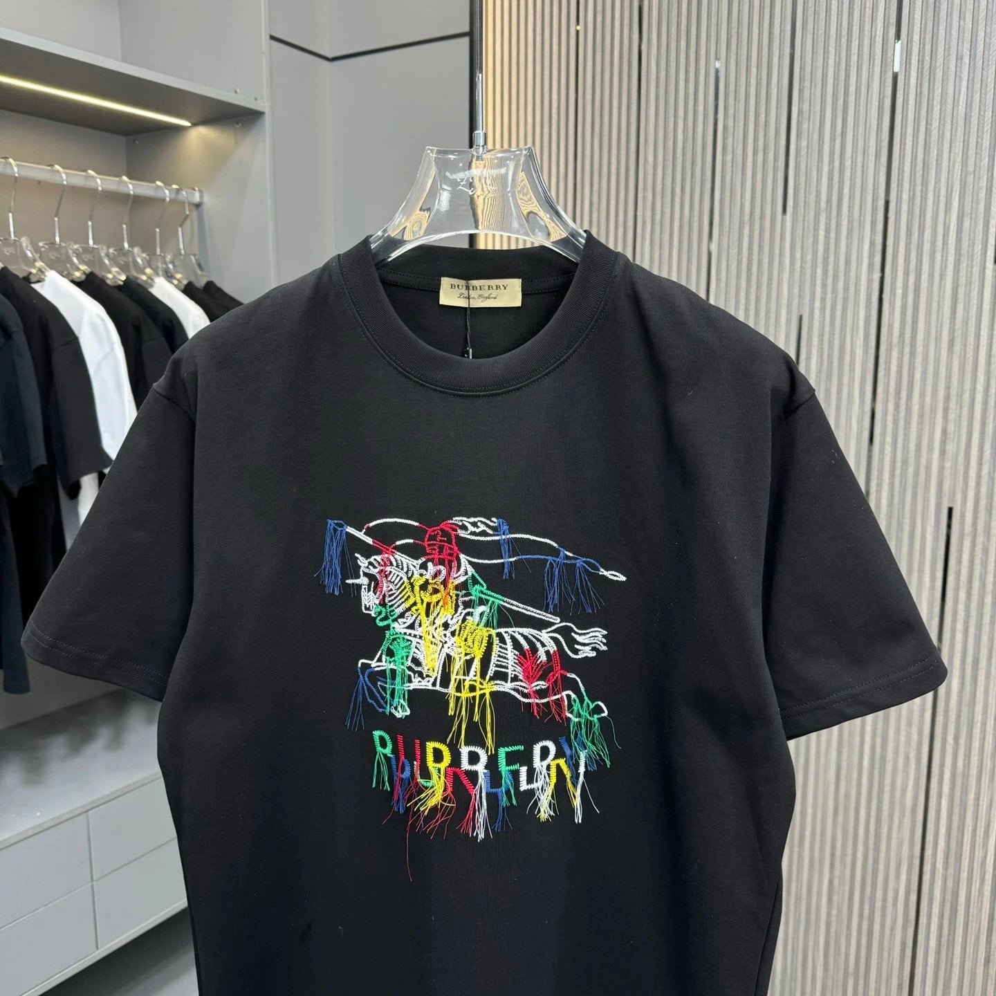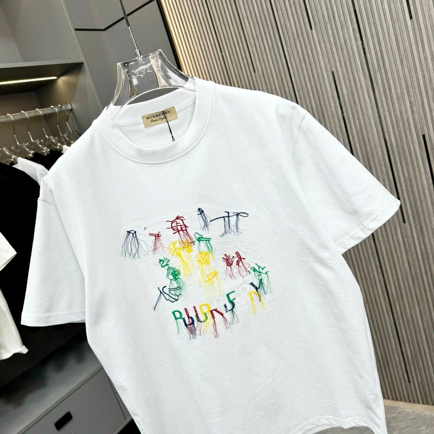 Burberry T-shirt Chest Embroidery Tassel Series Craft logo round Neck Short Sleeve25ss New Pure Cotton Unisex Style T T-shirt OS Loose Fit Base Shirt Top Half Sleeve T-Shirt