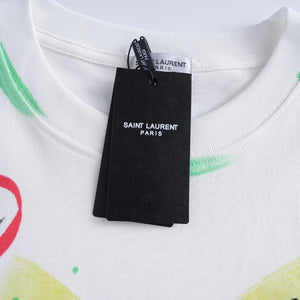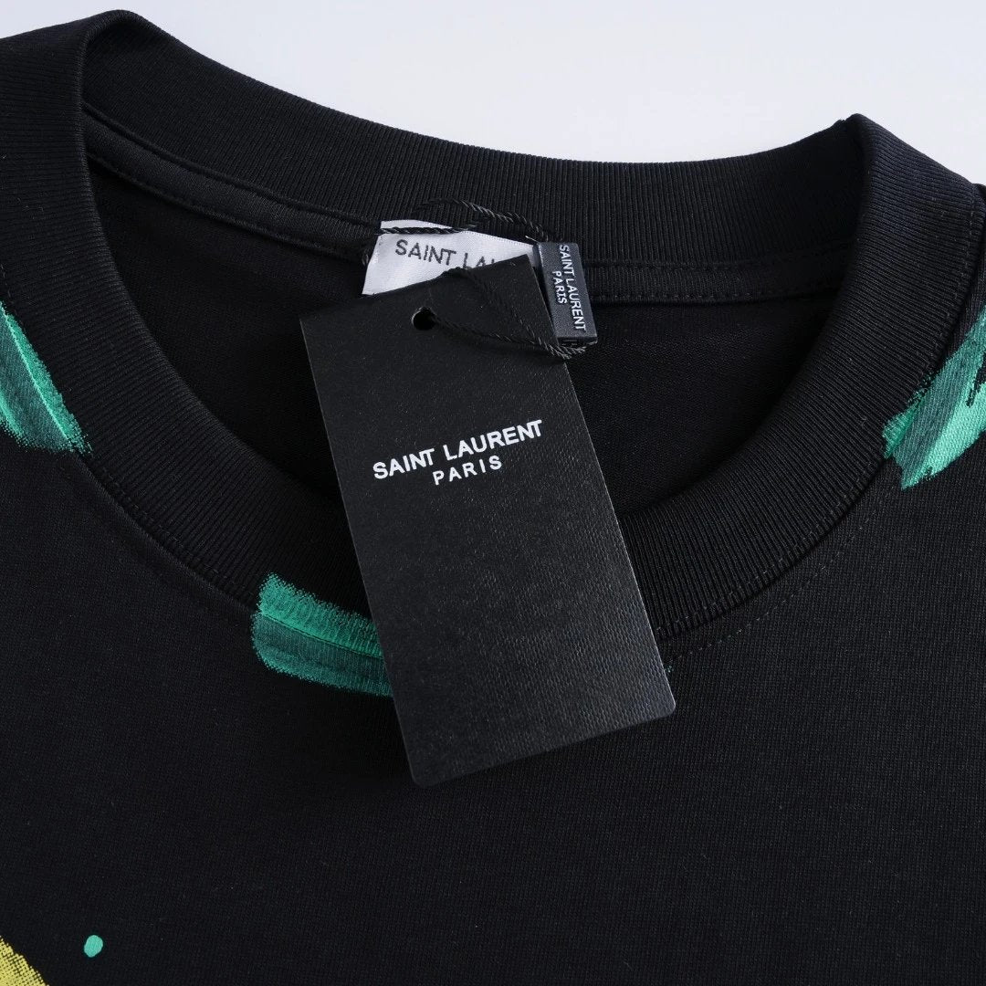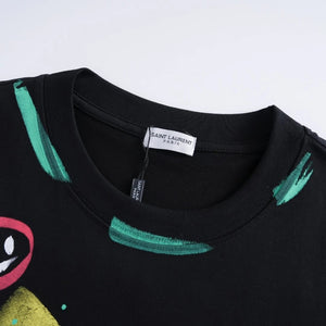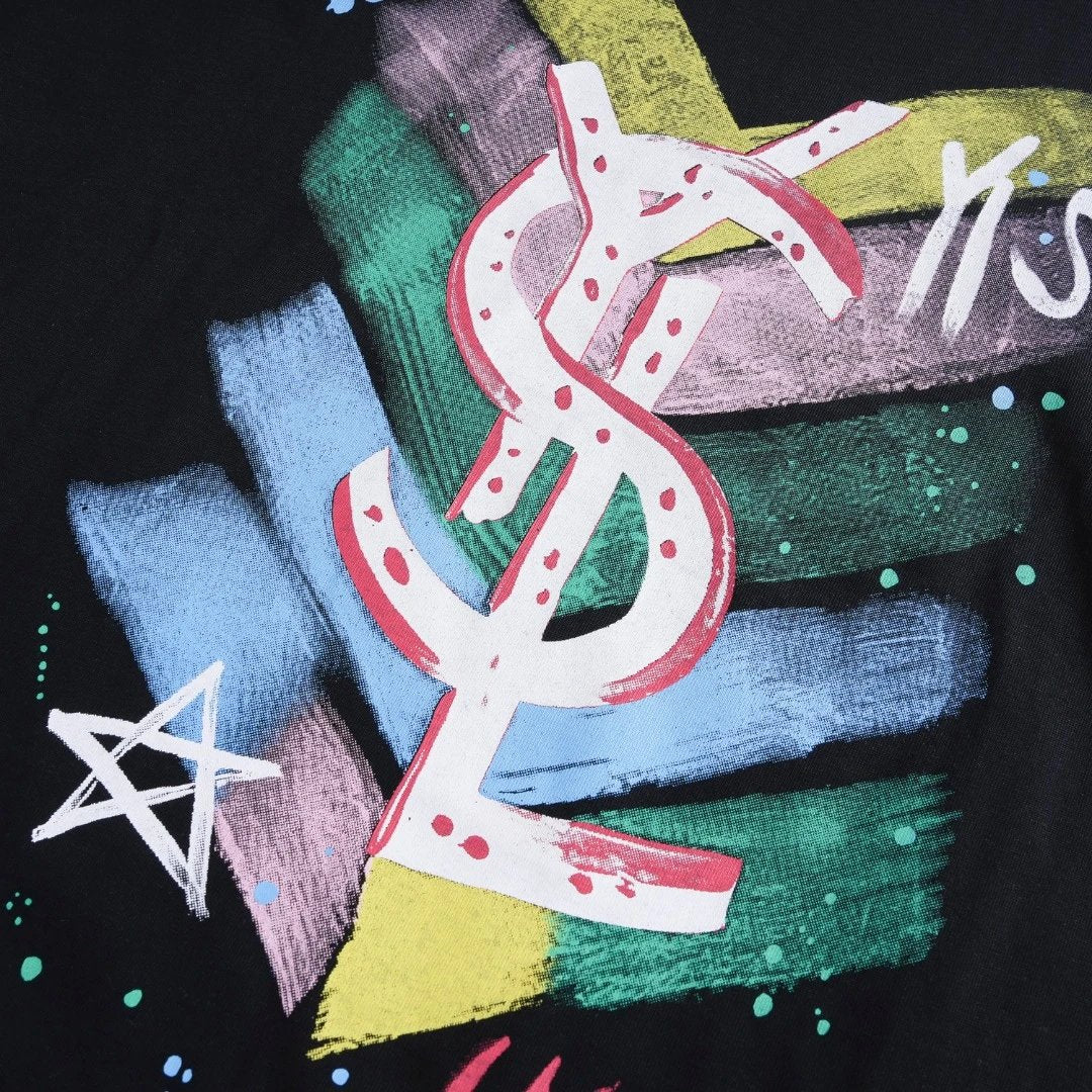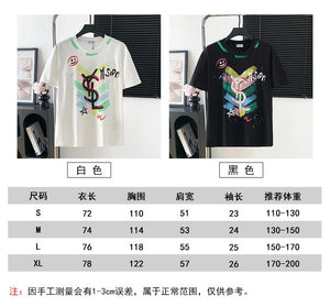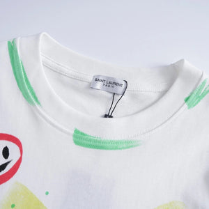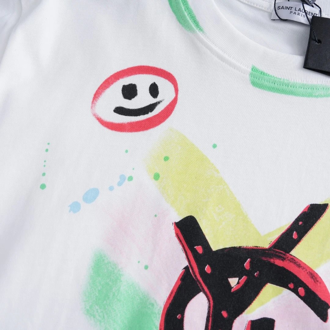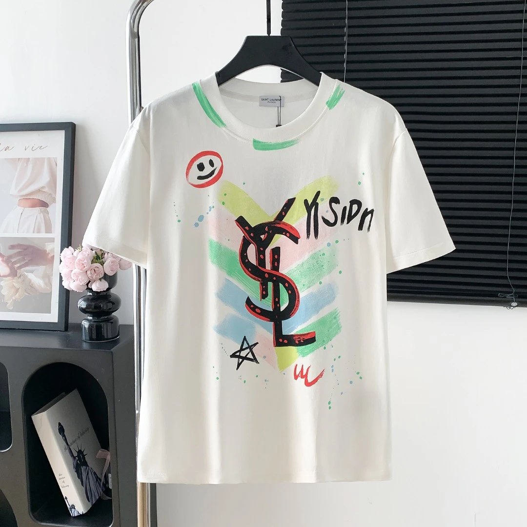 YSL T-shirt Chest Graffiti Hand-drawn Pattern Print logo round Neck Short Sleeve25ss New Pure Cotton Unisex Style T Casual T-Shirt Base Layer Shirt OS Loose Fit Half Sleeve Top Plus Size