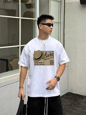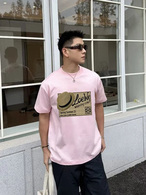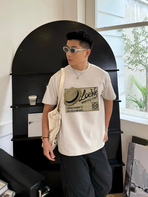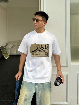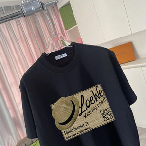 LOEWE T-shirt Chest Hat Pattern Print logo round Neck Short Sleeve25ss New Pure Cotton Unisex Style T T-shirt OS Loose Fit Base Shirt Half Sleeve T-Shirt Top Half Sleeve