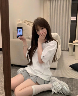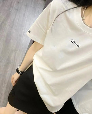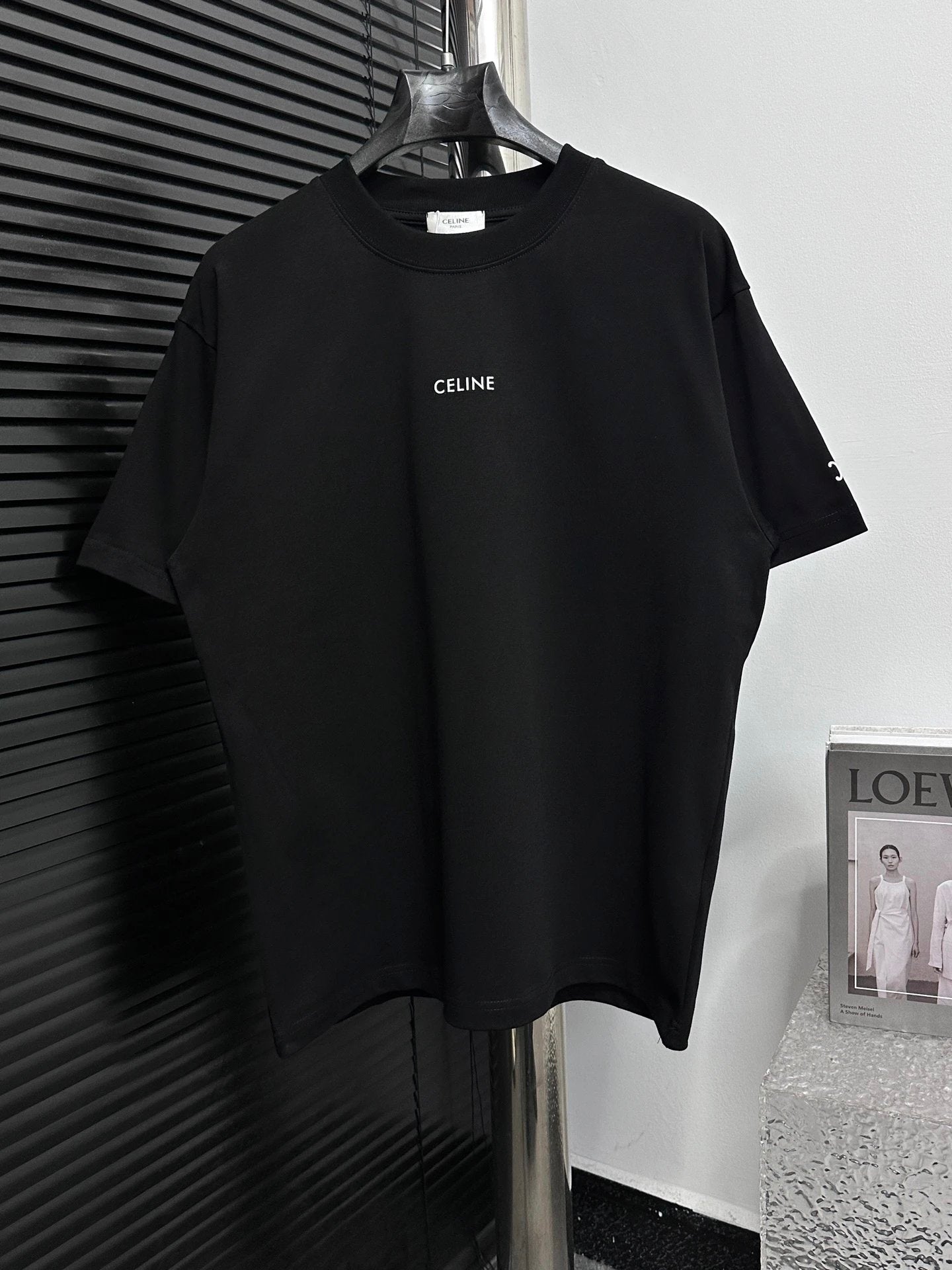 Celine T-shirt Chest Letter Print logo round Neck Short Sleeve25ss New pure cotton T Unisex T-Shirt OS Loose Fit Base Shirt Top Half Sleeve T-Shirt