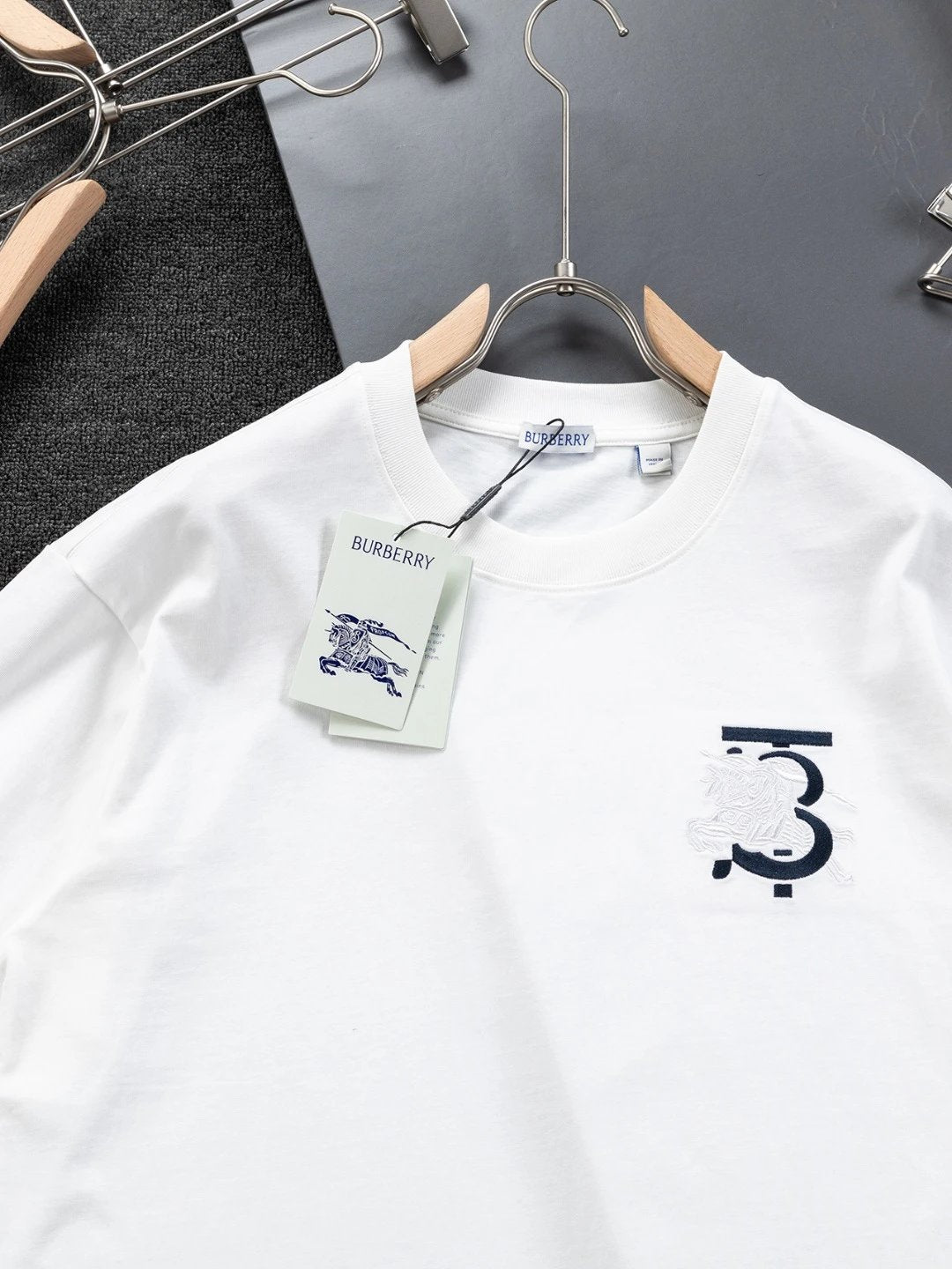 New Exclusive Limited Edition War Horse TB Logo Pattern War Horse Emblem Pattern Embroidery? Exquisite Craftsmanship 320g Washed Fabric T-shirt As a leader in luxury, B brand deserves its place, and today we'll talk about this piece. First thing that catches your eye is its loose and comfortable black and white solid color styles~~ The ribbed round neck becomes its decorative feature, while B brand features a logo arrayed on the chest with a unique pin design using color-blocking to enhance texture!
