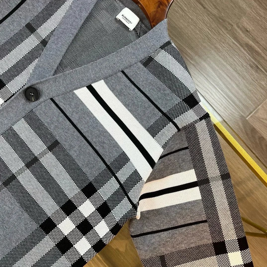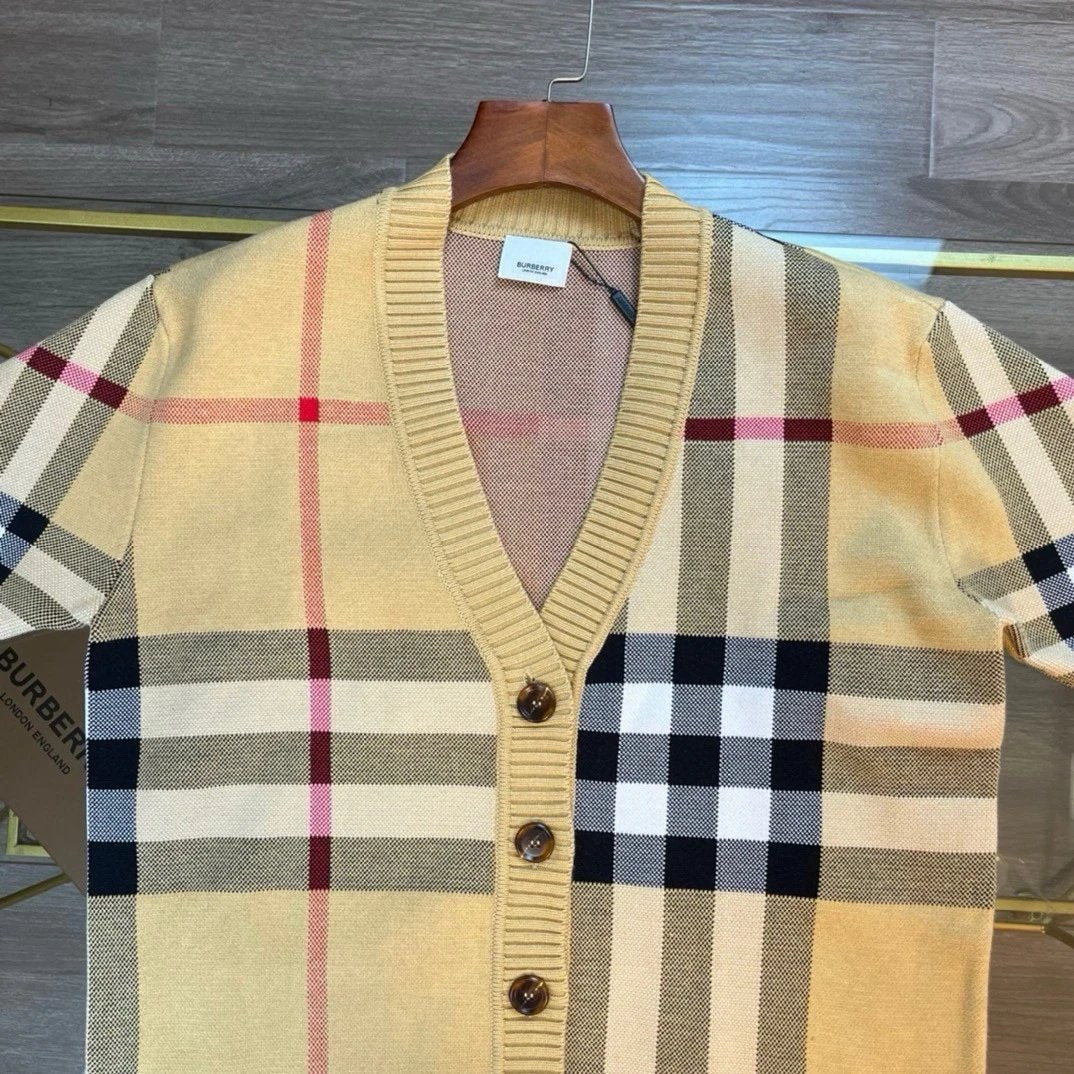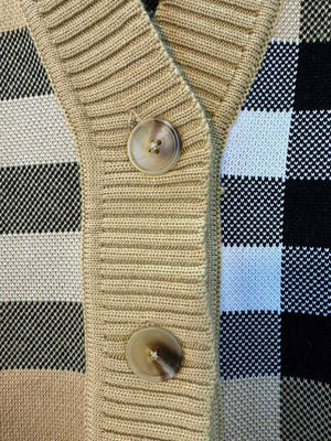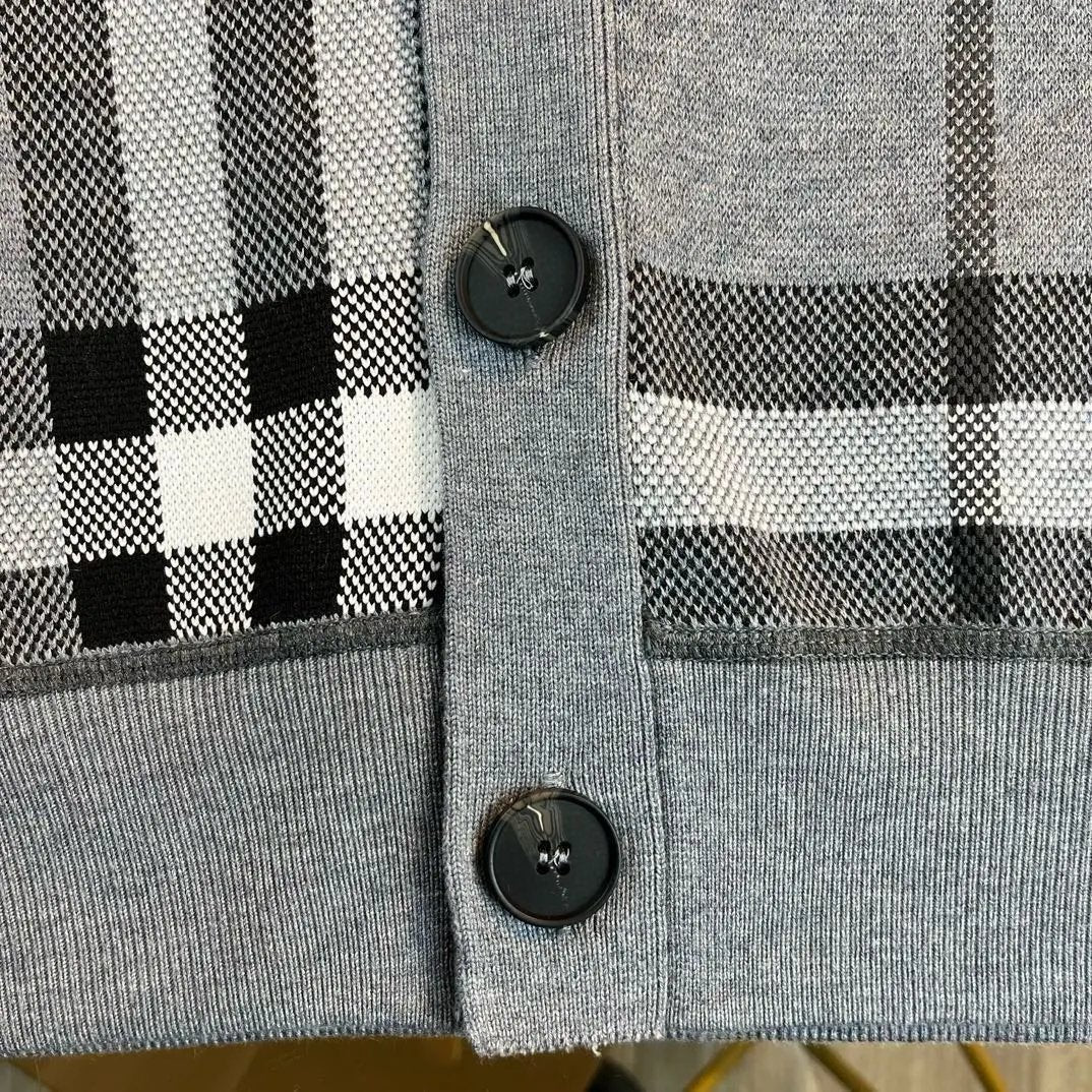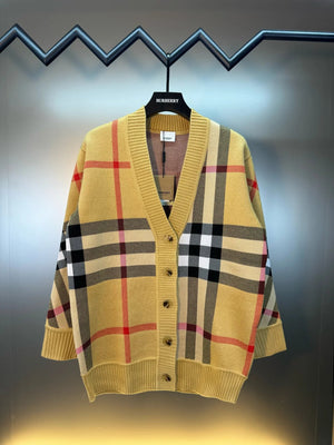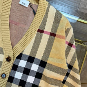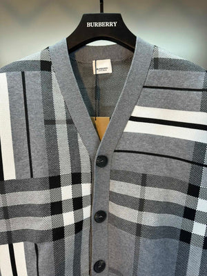 BURBERRY SS24 New Large Plaid Knit Wool Cardigan Sweater