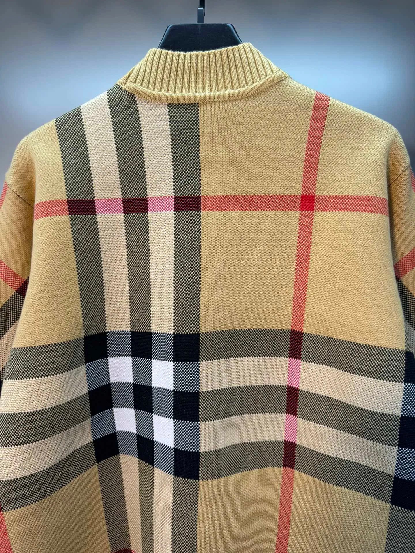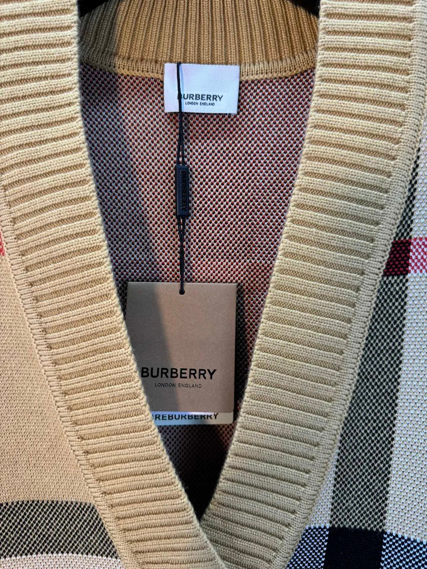 Burberry Sweater Classic Large Plaid Wool Cardigan Sweater800Thickened Warm Sweater Large V Unisex Jacket Coat for Men and Women24ss Autumn and Winter New Products