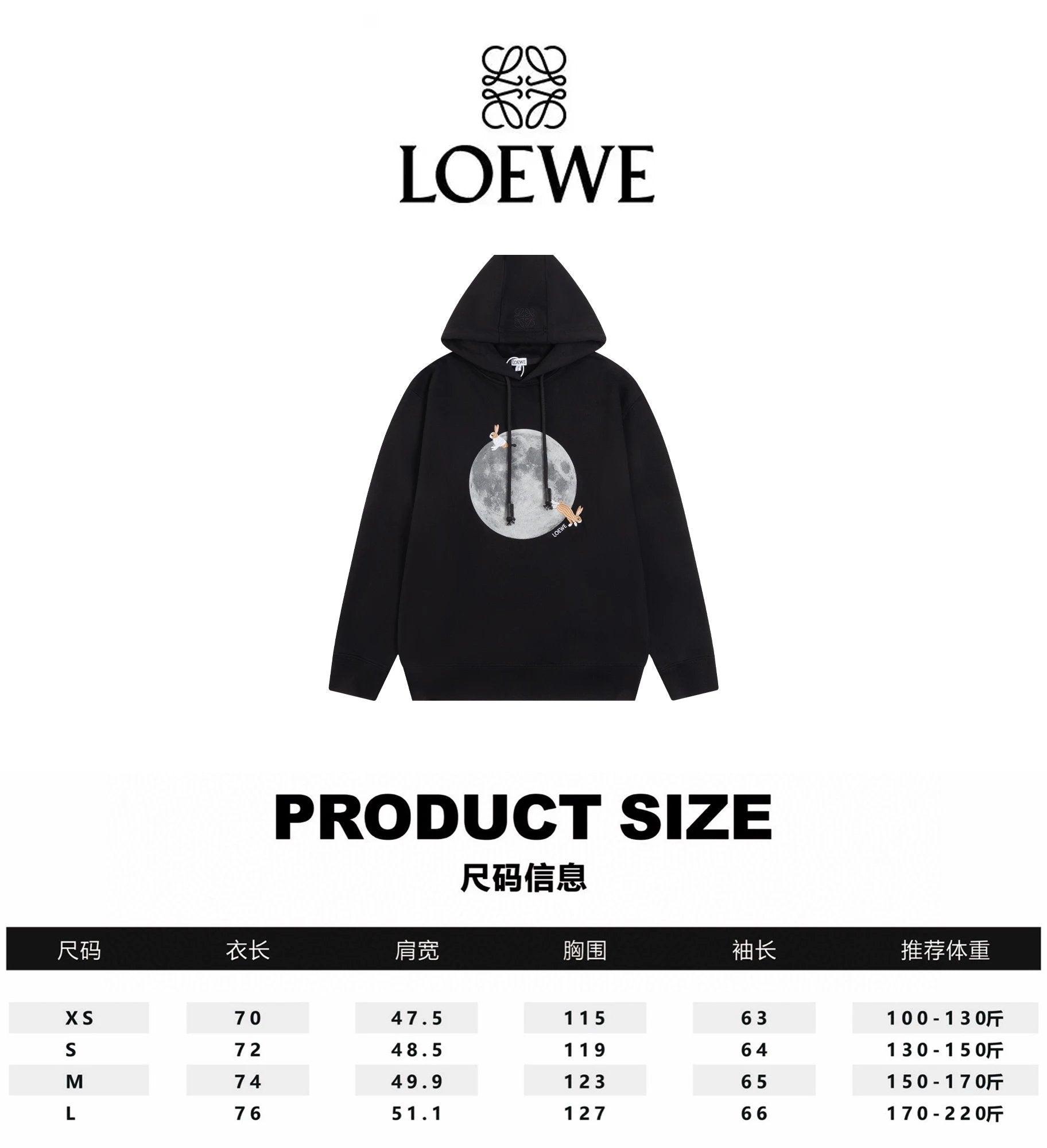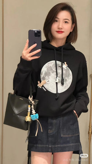 LOEWE Hoodie Collaboration Moon Rabbit Hooded Sweatshirt Jacket Hoodie Top Unisex Sports Casual OS Loose fit versatile style